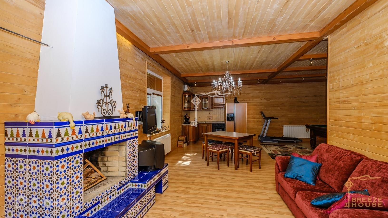 -В зонах гостиной, кухни и столовой - водяной теплый пол;