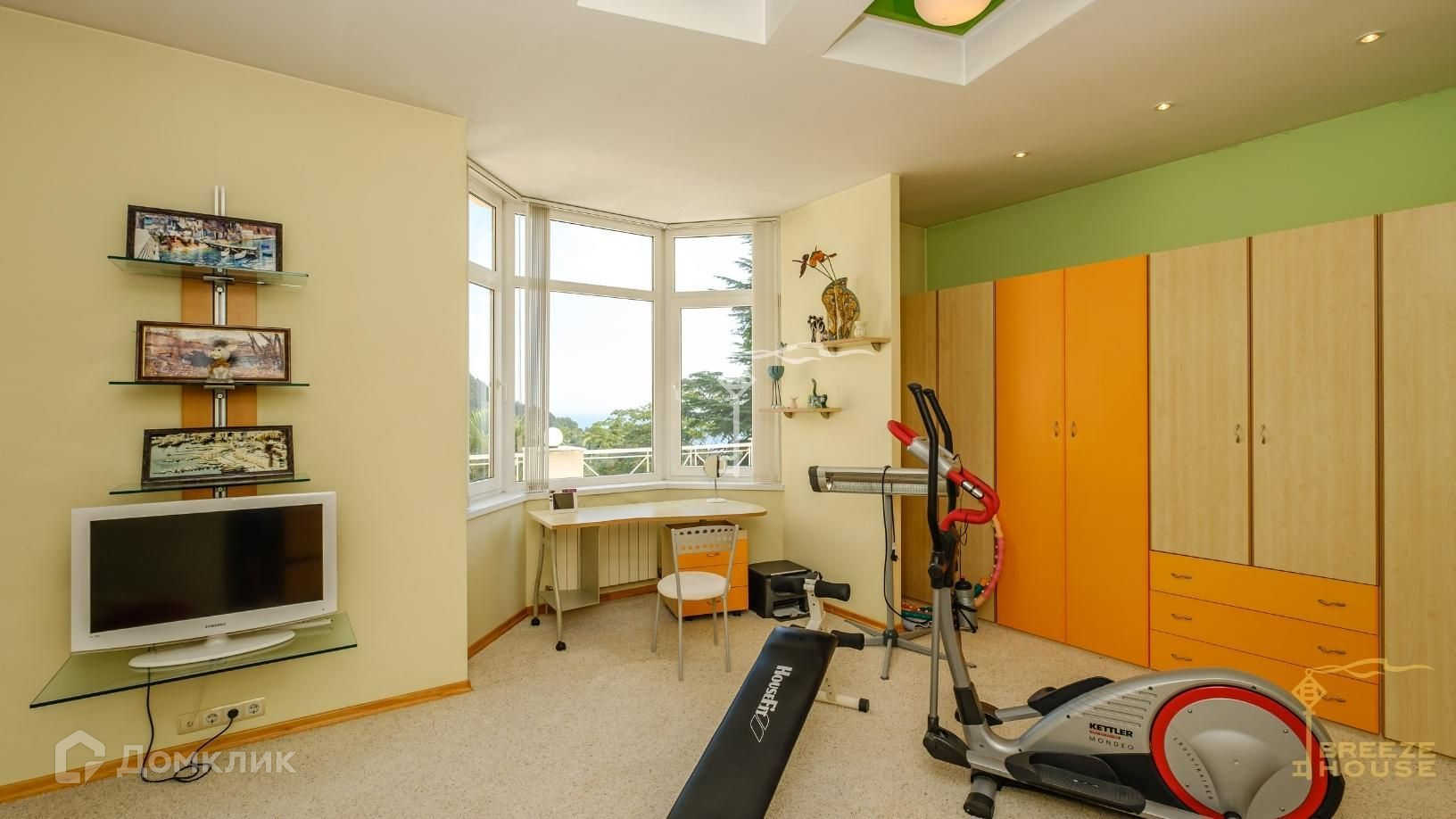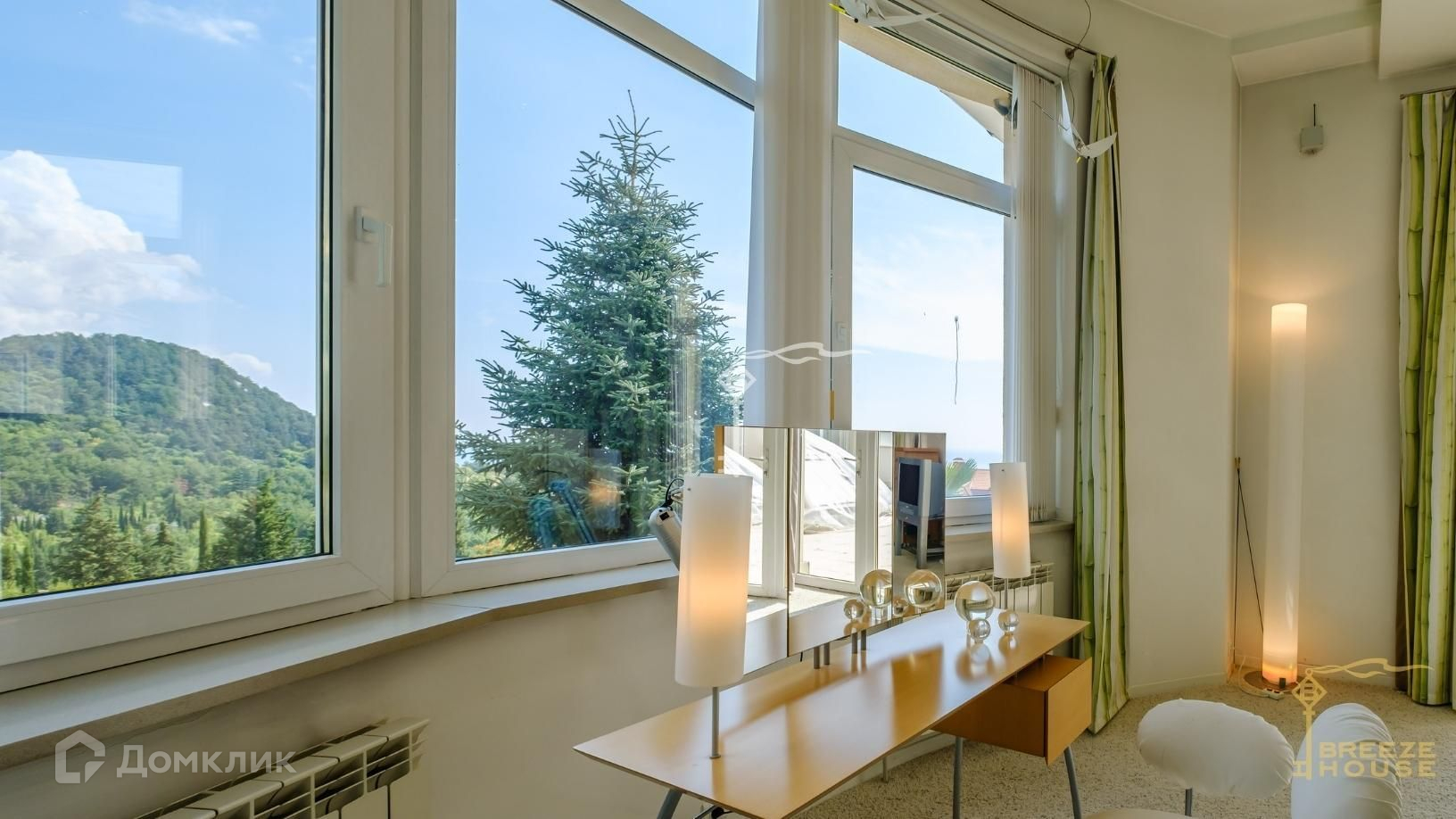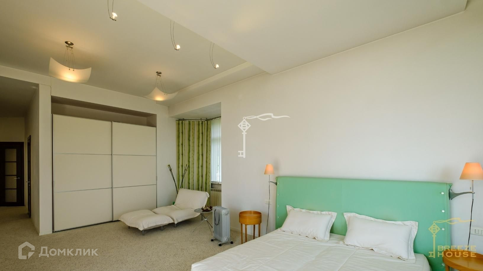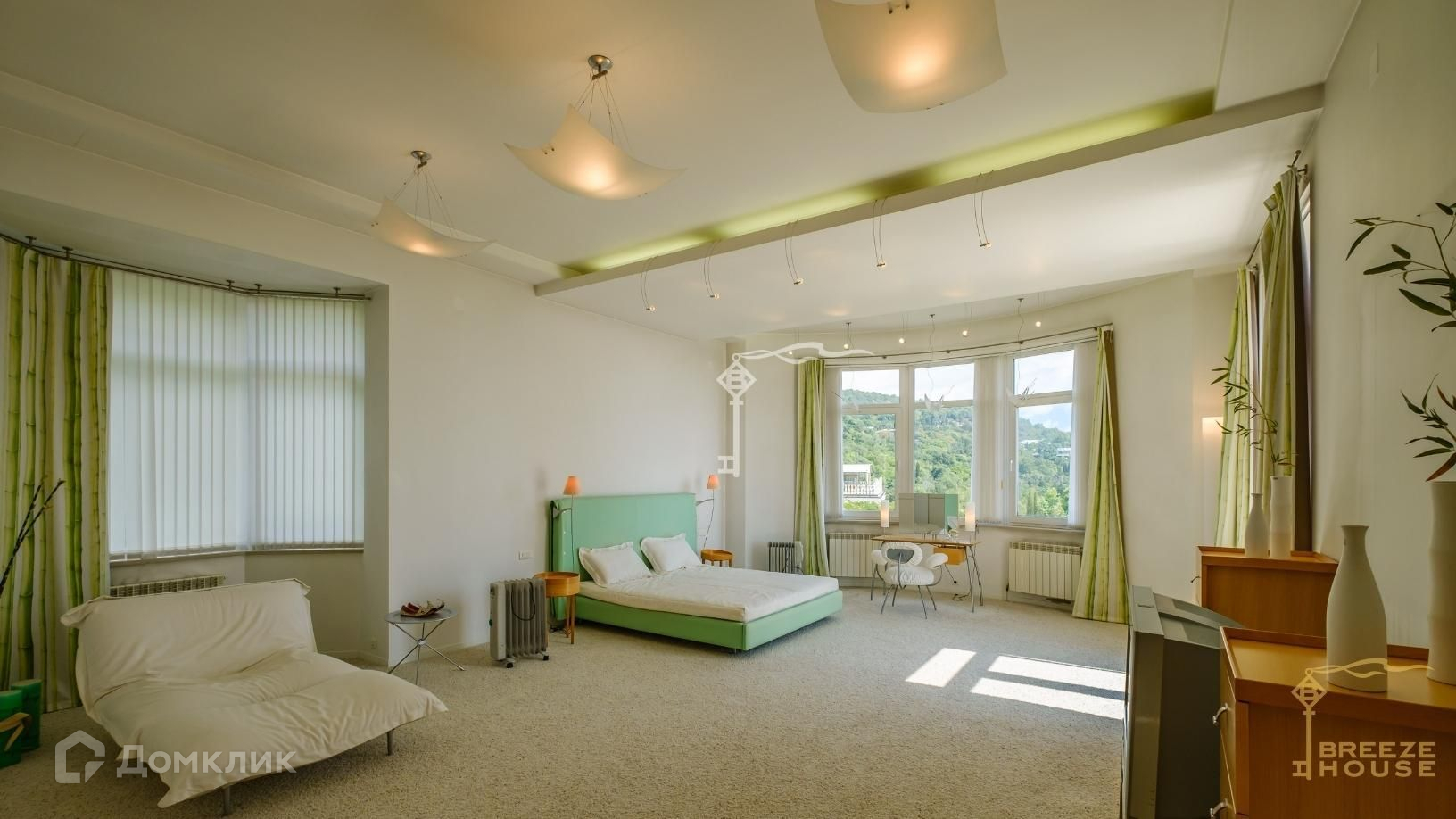 -мастер-спальня с гардеробом и выходом на большую террасу с живописными видами на море, горы и зеленый поселок.