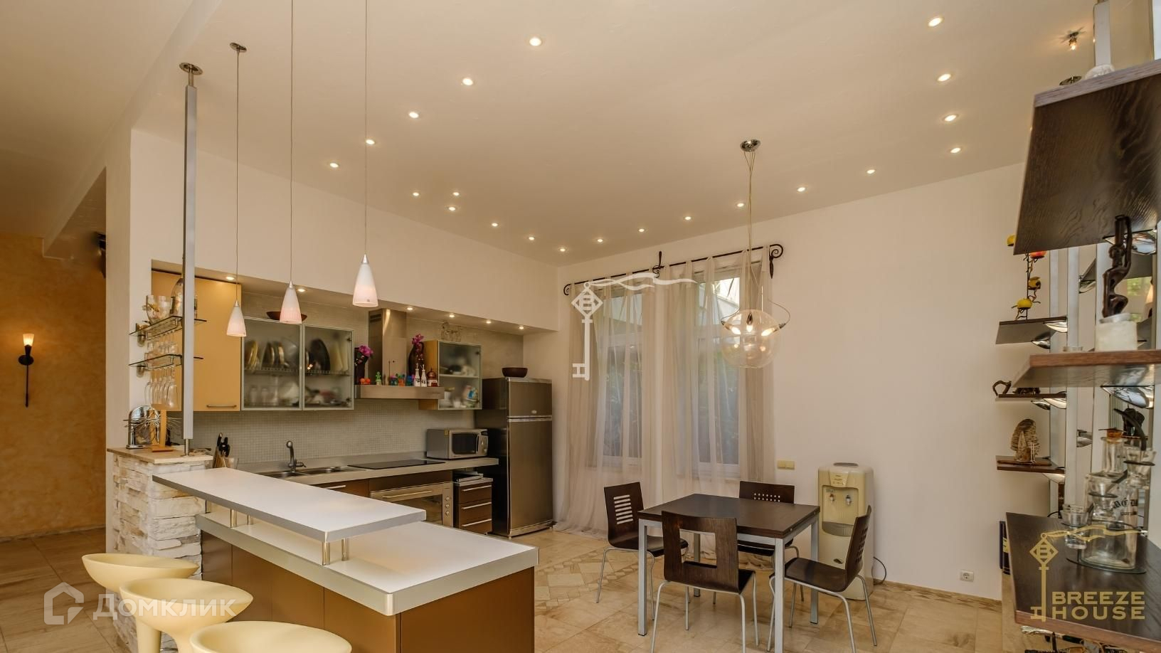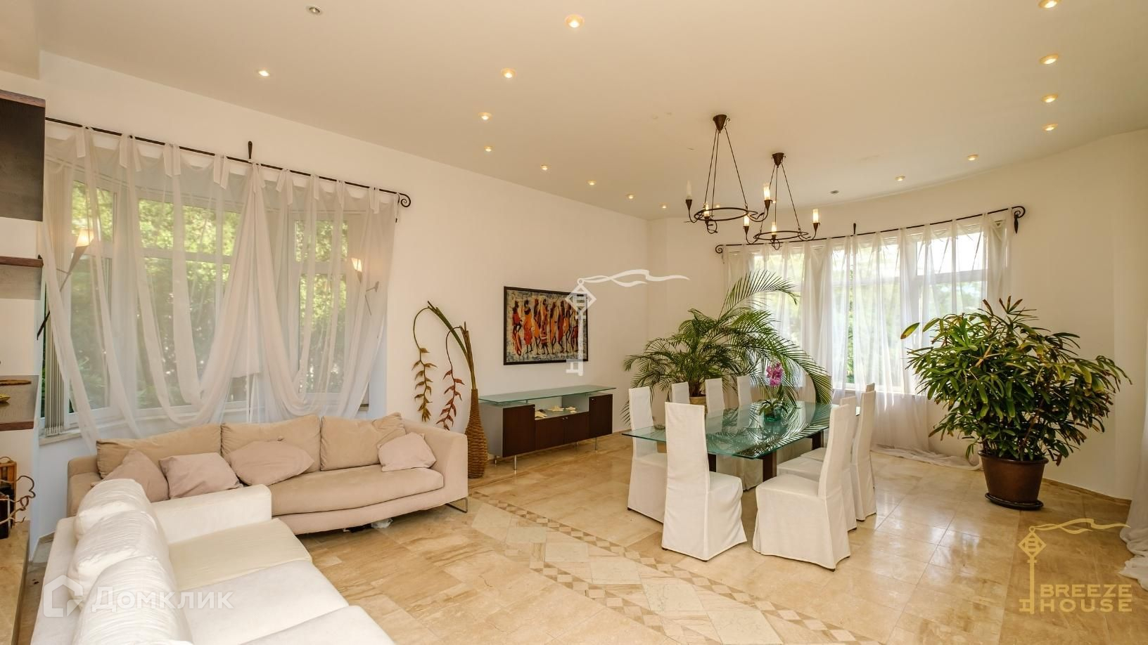 В доме выполнен качественный ремонт с использованием натуральных материалов: итальянские мраморные полы, а также качественная итальянская мебель и сантехника.
