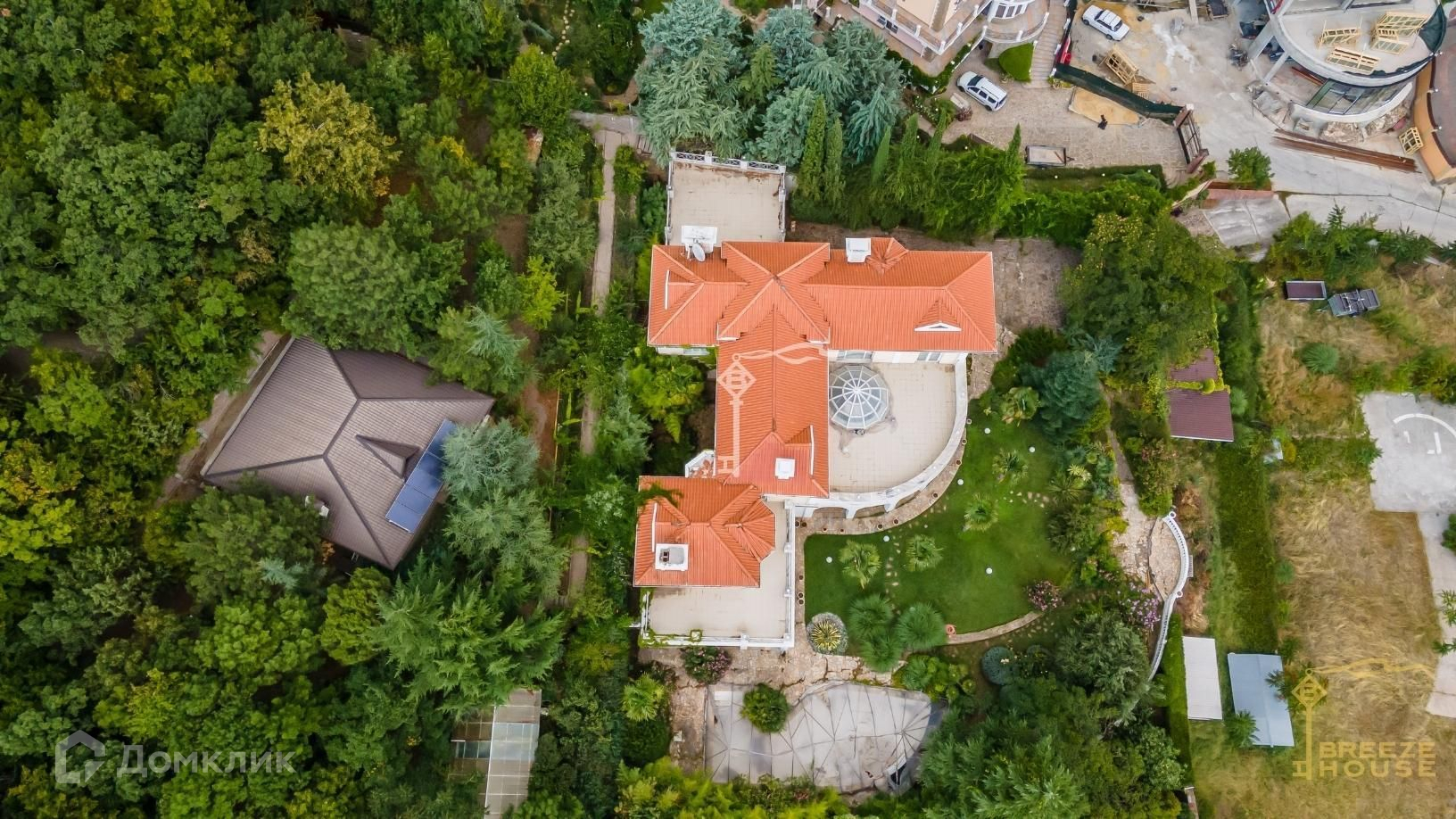 Есть возможность приобрести соседний участок с вертолетной площадкой и отдельностоящим банным комплексом в котором расположены: крытый бассейн, баня с финской печью Harvia и бильярдная комната (на фото).