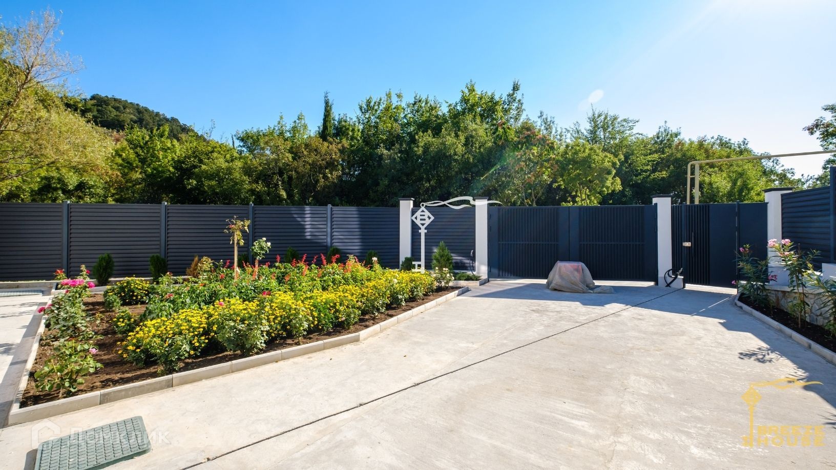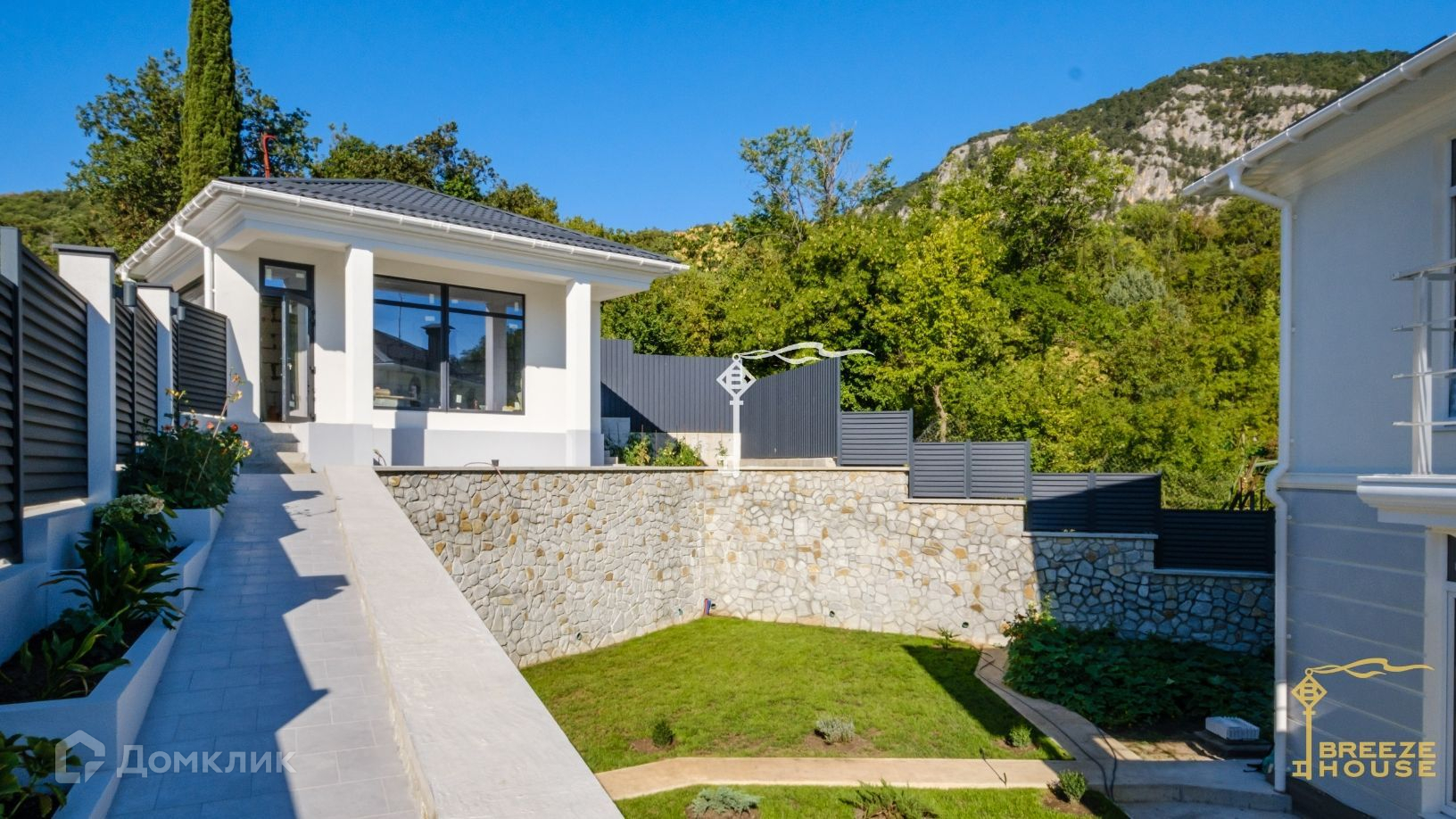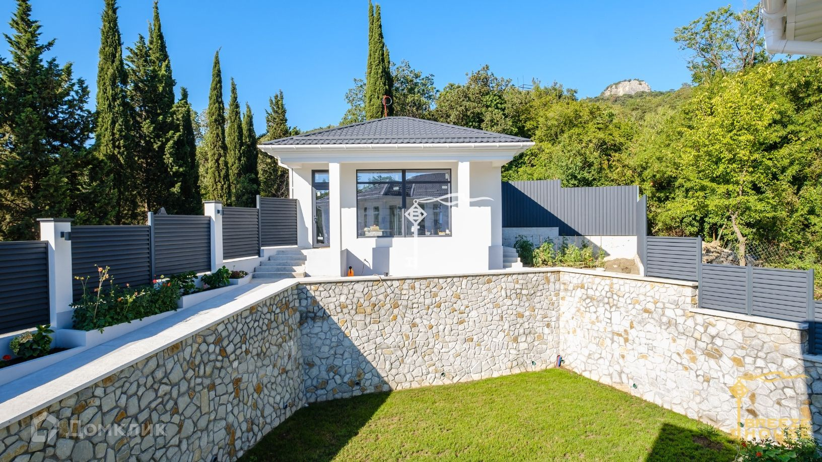 Земельный участок тщательно благоустроен. Здесь выполнено террасирование, уложен зеленый газон и залиты бетонные тропинки, дополнительно будут высажены зеленые насаждения. Возможно размещение бассейна с шезлонгами, беседки с зоной BBQ, небольшого плодового сада и детской площадки. Все это создает идеальное место для отдыха и проведения времени на свежем воздухе.