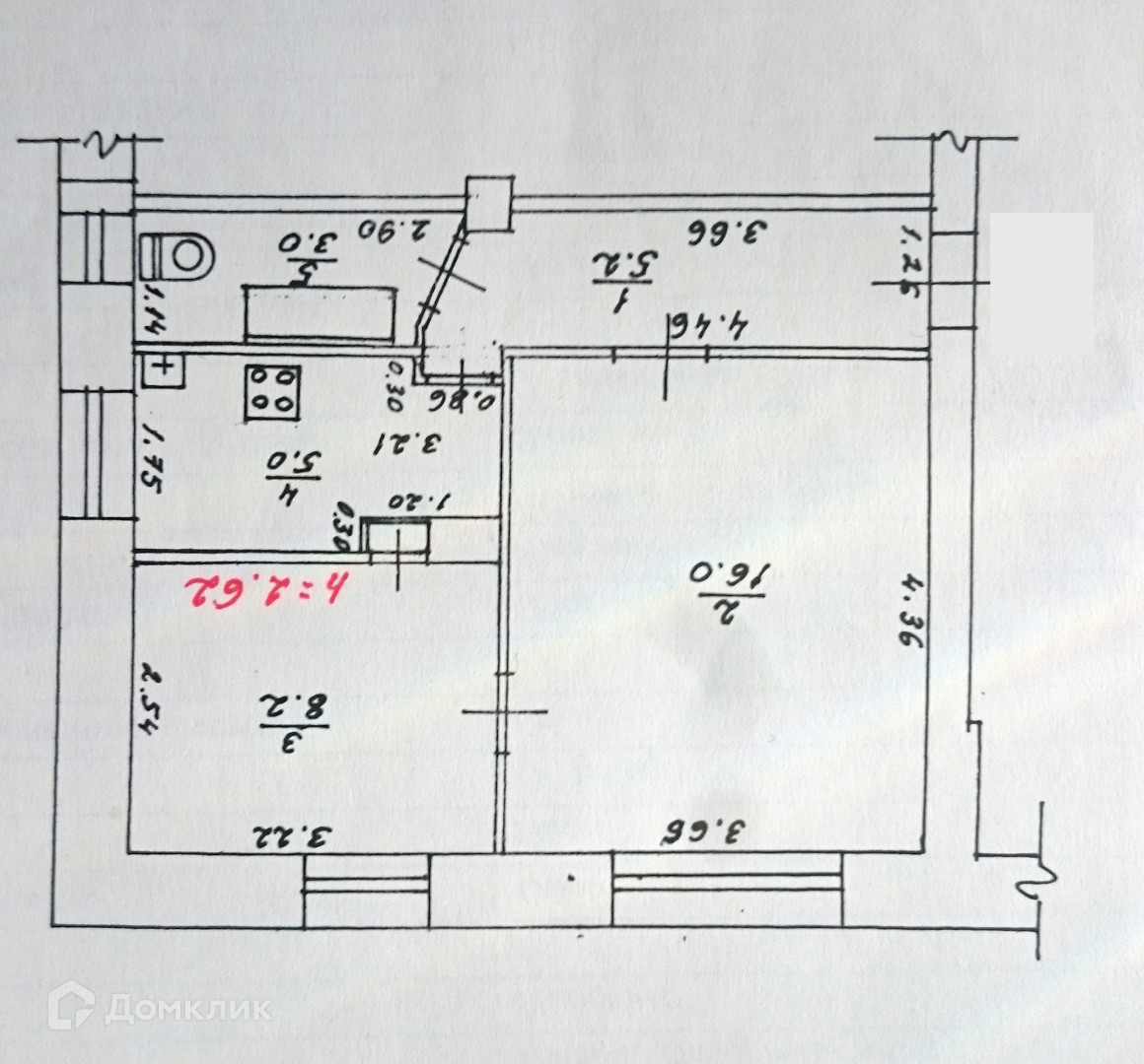 Жилая площадь 24.2 м2