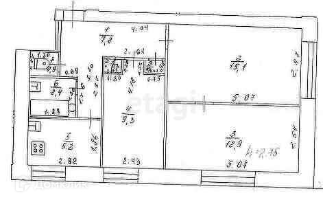 Площадь кухни 5.2 м2