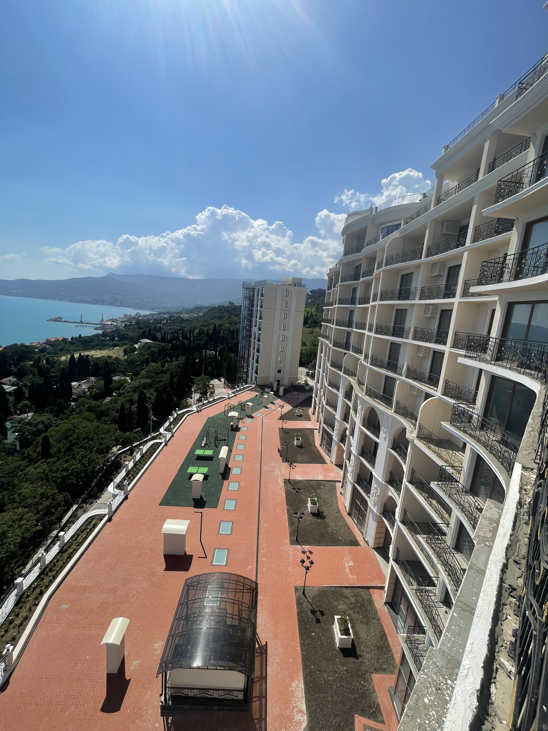 Основное преимущество - собственный пляж в 500 метрах от комплекса, дойти до которого можно через живописный парк. Сам комплекс граничит с Никитским ботаническим садом, история которого началась еще в 1812 году.
