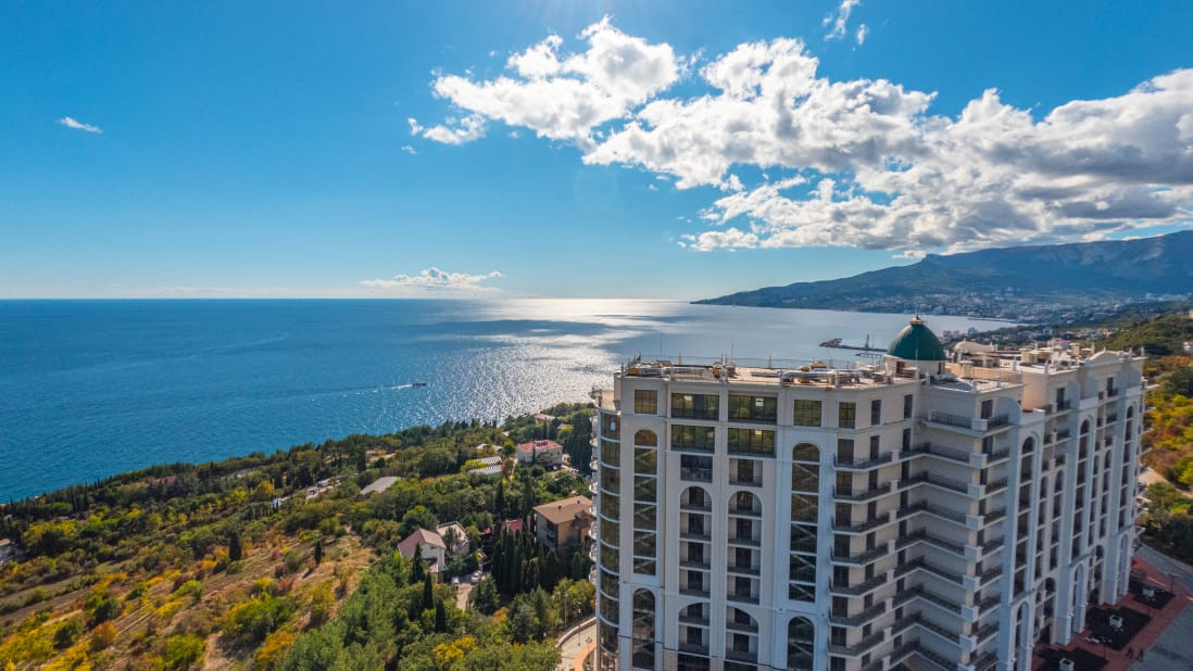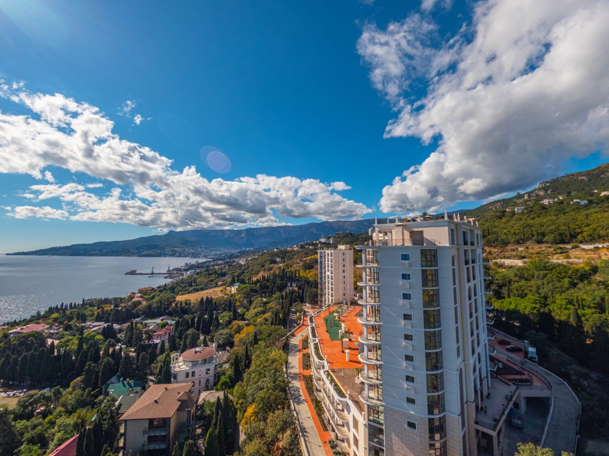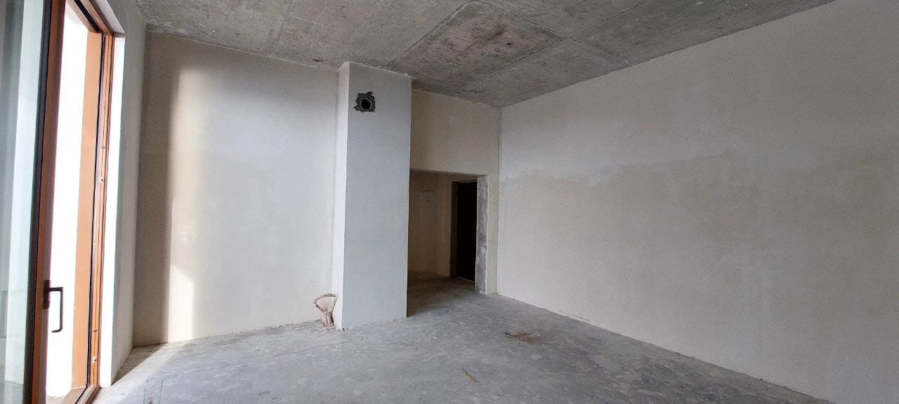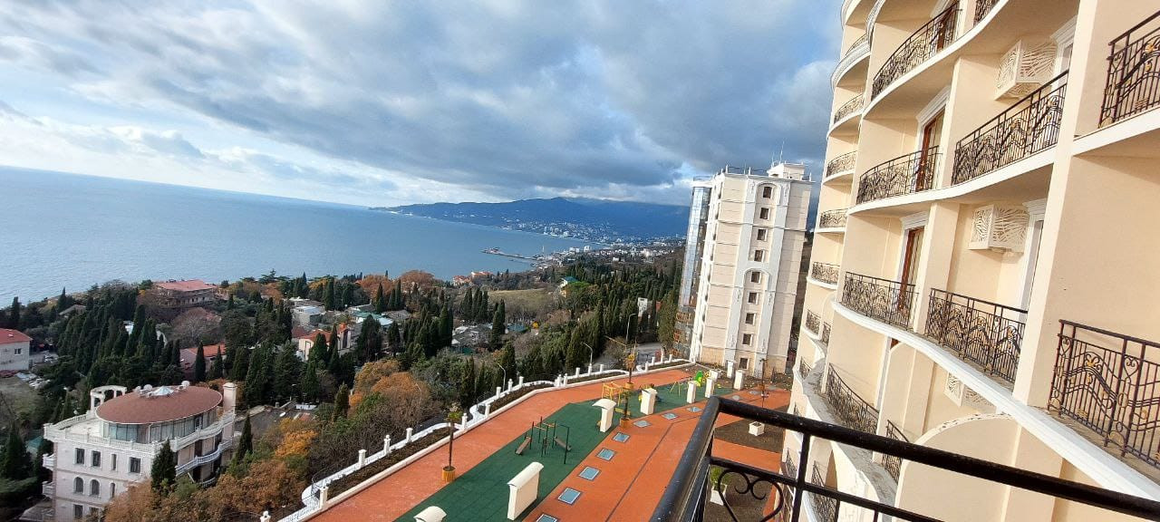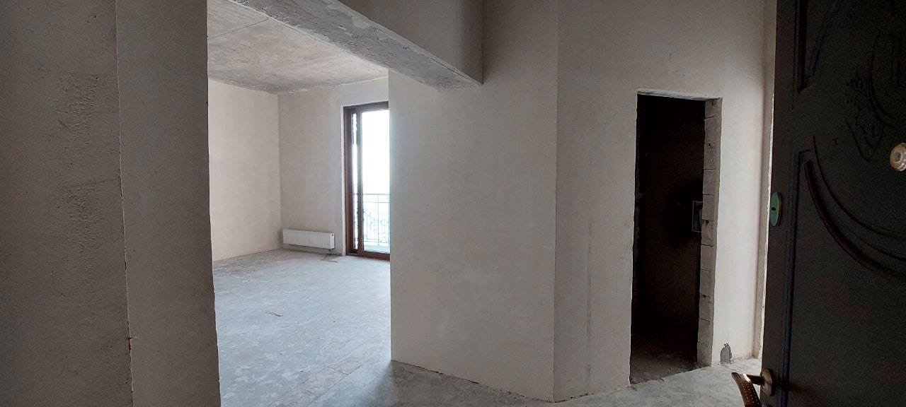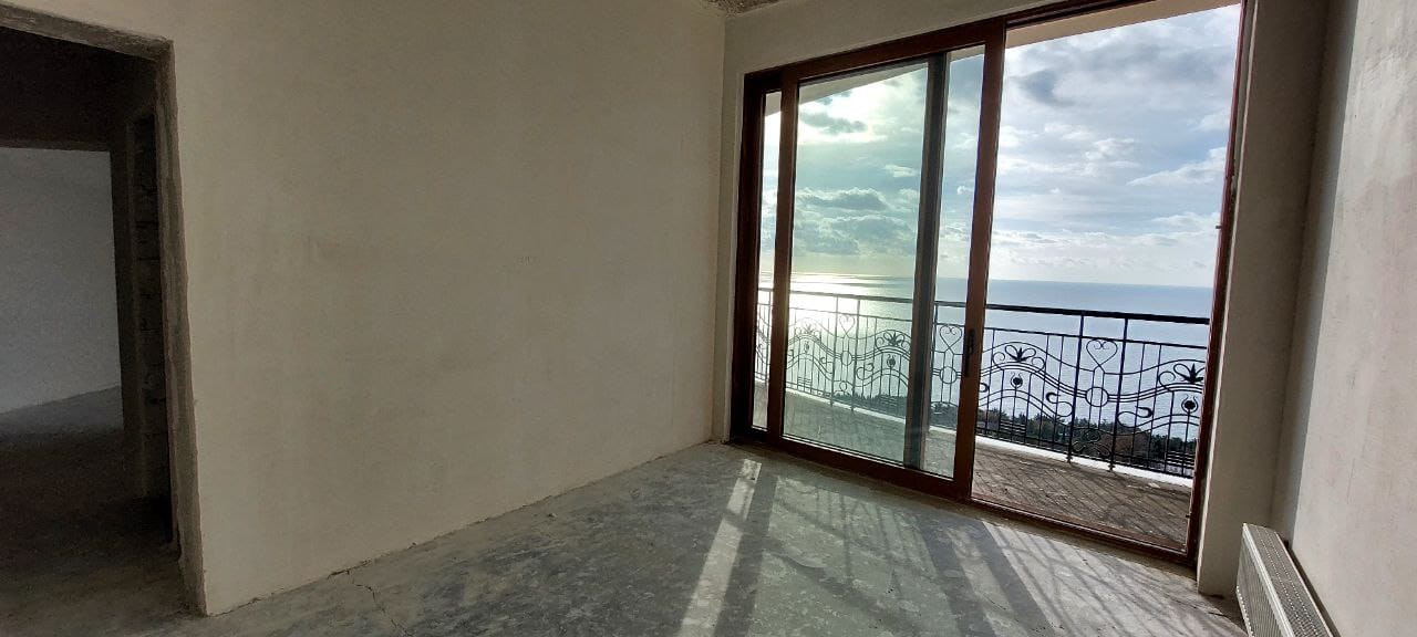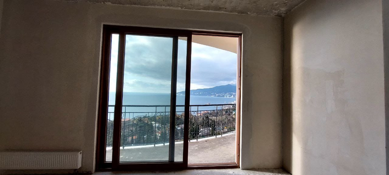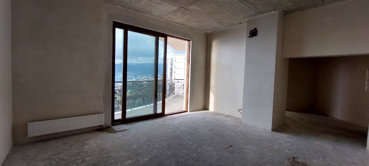 Квартира расположена на 8 этаже 12 этажного дома. Квартира состоит из прихожей, большой кухни-гостиной, спальни, двух санузлов. Имеет большой балкон, панорамное остекление, раздвижные оконные системы, окна выходят в сторону моря. В квартире пред чистовая отделка, стяжка полна, стены оштукатурены. Центральное отопление (газовая крышная котельная), горячая вода от котельной, электроплита. Сам по себе это закрытый комплекс, с охраной, со своей инфраструктурой, со своим закрытым пляжем. Комплекс бизнес класса.