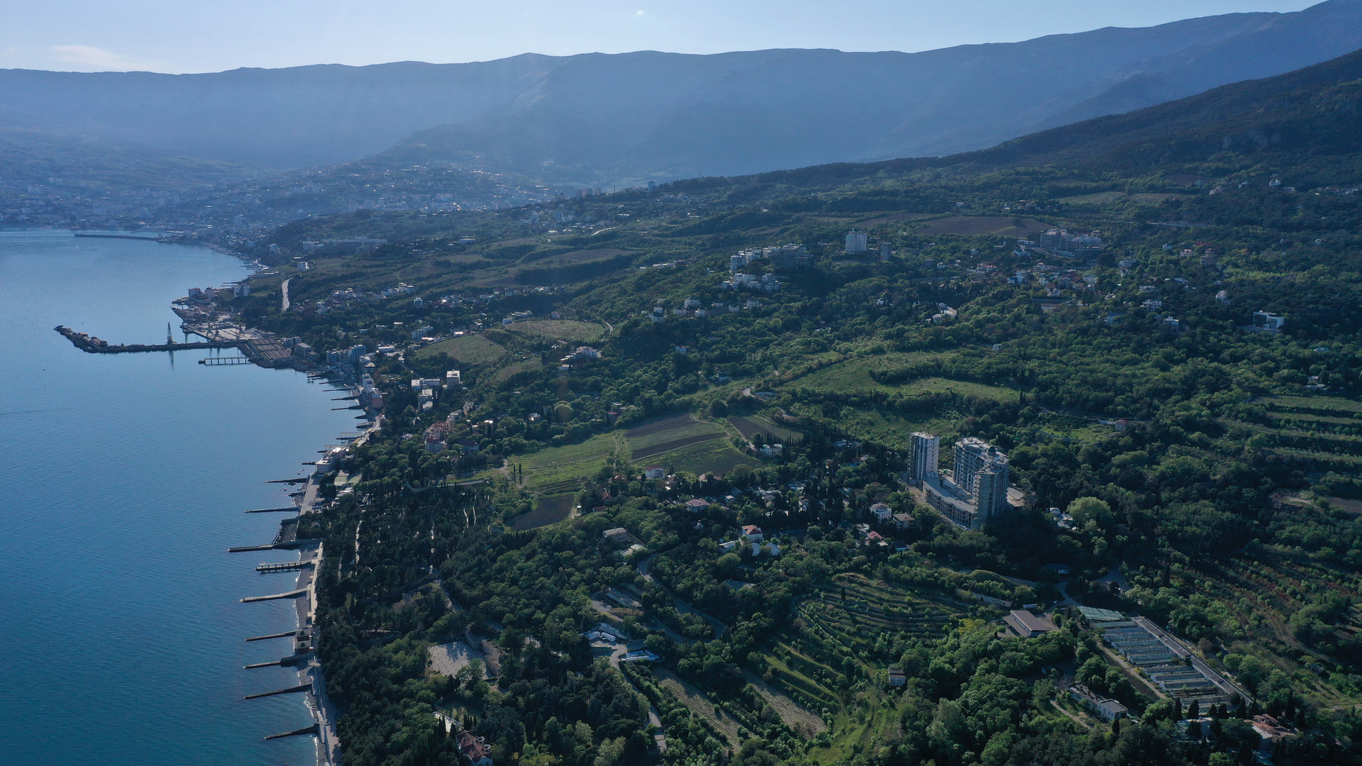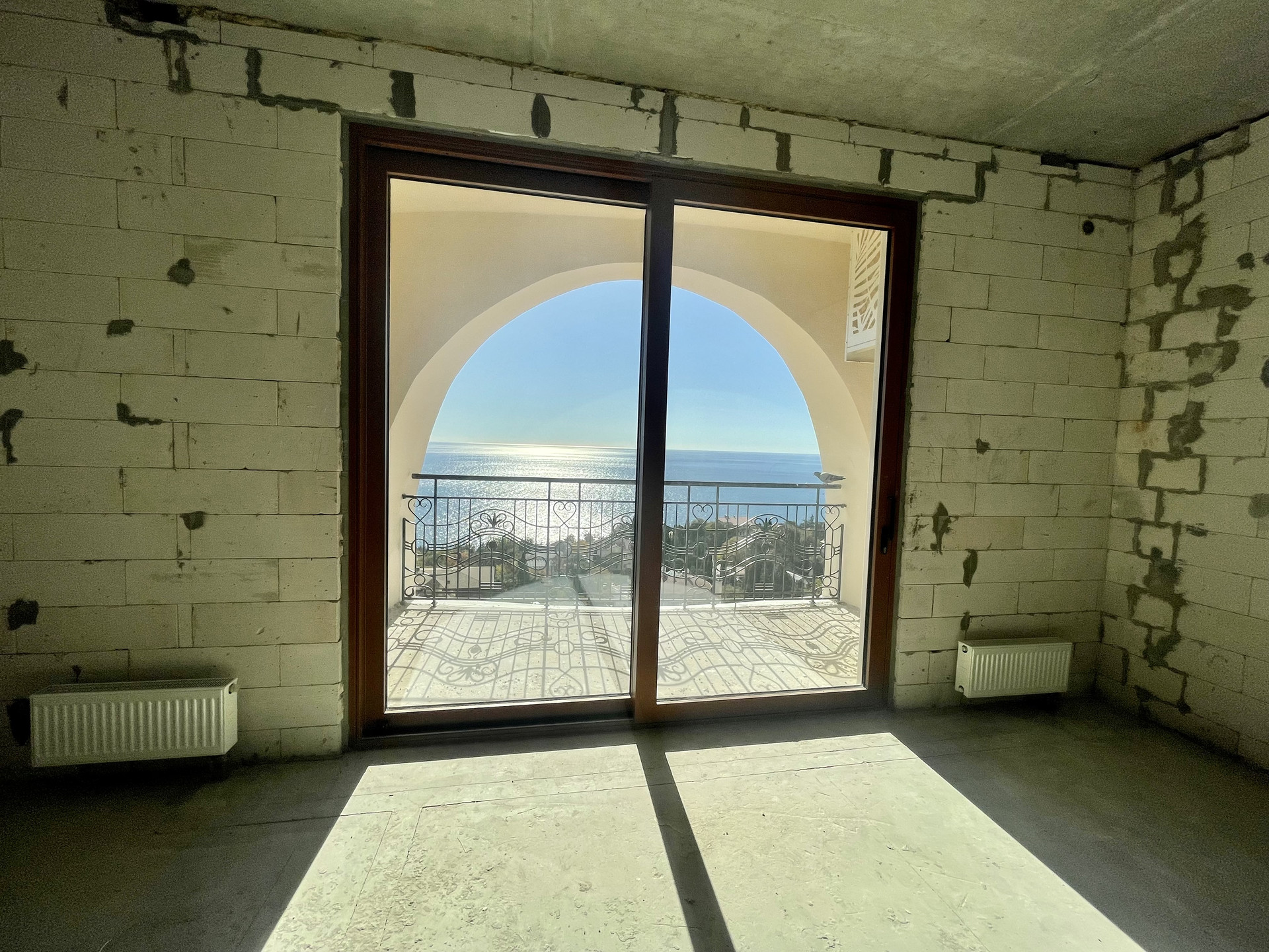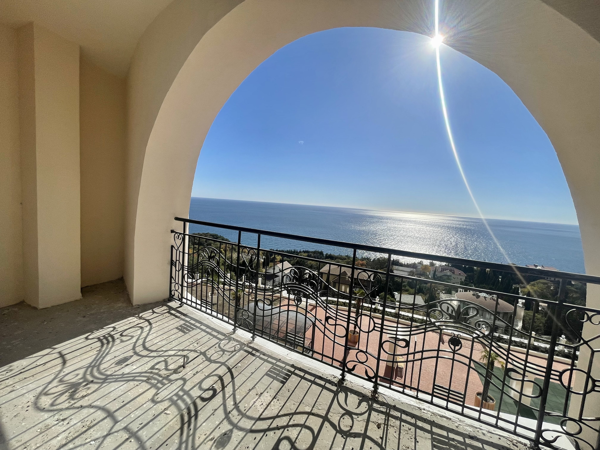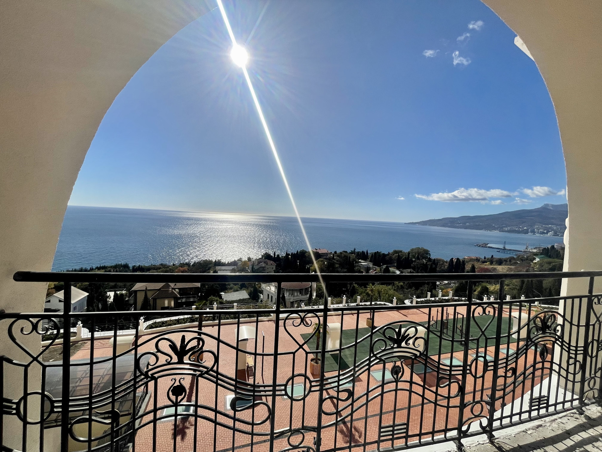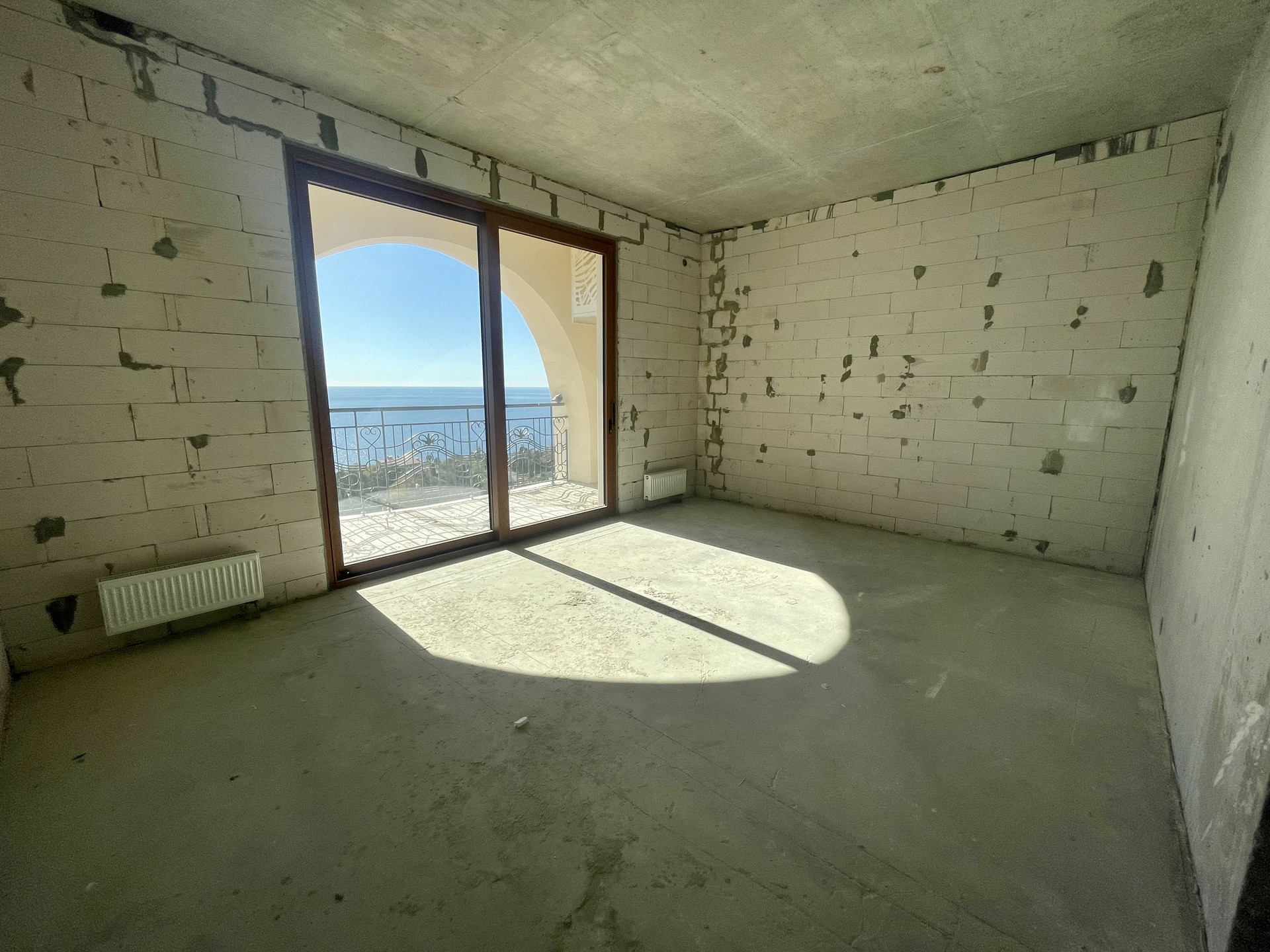 Общая площадь 39,1 кв.м: просторная комната, где можно разместить кухню и зону отдыха, совмещенный сан.узел, коридор (прихожая зона) и открытый балкон с видом на морское побережье и Ялтинскую бухту.