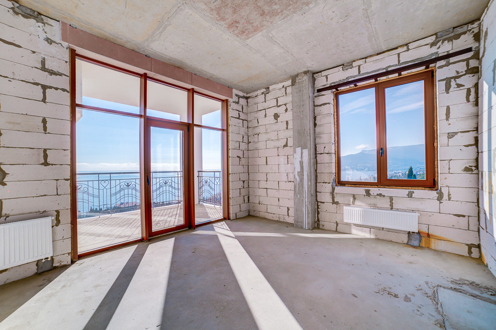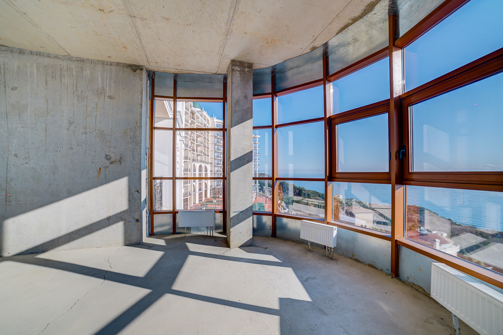 В квартире 2 спальни. Одна спальня расположена на северной стороне, что идеально для сна – не солнечная и не жаркая. Вторая спальня с видом на море и просторной терассой, где можно наслаждаться завораживающим видом на море, Ялтинскую бухту, пик горы Ай Петри и солнечными закатами , у спальни есть свой санузел с окном, вид из которого на горы. Так же, в квартире кухня- гостиная и еще 2 санузла. Из кухни-гостиной выход эркерное остекление с панорамным видом на море. Расположение окон позволяет наблюдать солнечные рассветы и закаты.