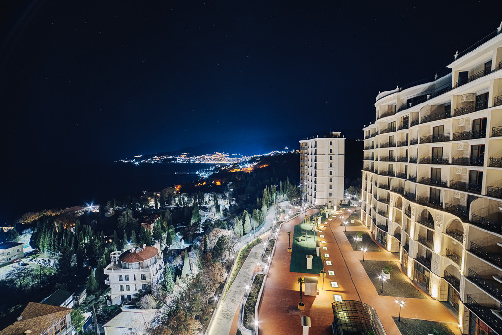 Основное преимущество - собственный пляж в 500 метрах от комплекса. Дорога к пляжу ведет через живописный парк, по которому приятно прогуляться или воспользоваться электрокаром комплекса. Сам комплекс утопает в зелени деревьев, потому что граничит с Никитским ботаническим садом, история которого началась еще в 1812 году. Комплекс "Никитский дворец" расположен на горном склоне, благодаря чему из всех окон главного фасада открывается великолепный вид на море, горы и всегда свежий воздух!