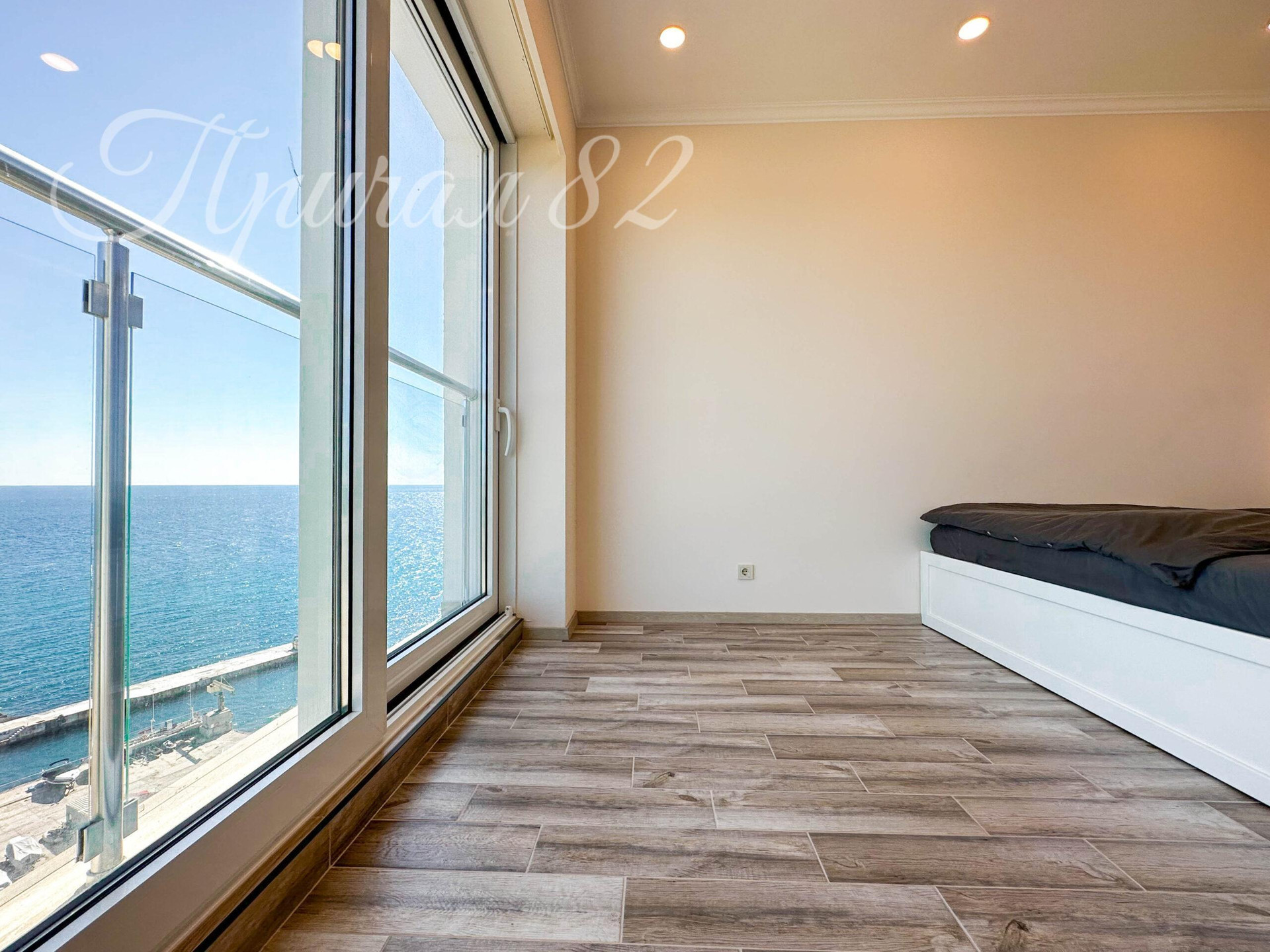 Видовая квартира на первой линии в Ялте общей площадью 49,4 кв.м., с которой открывается великолепный прямой панорамный вид на море, квартира с расположена на 6-ом этаже 8-ми этажного жилого дома, с остеклением от пола до потолка, благодаря чему квартира очень светлая.