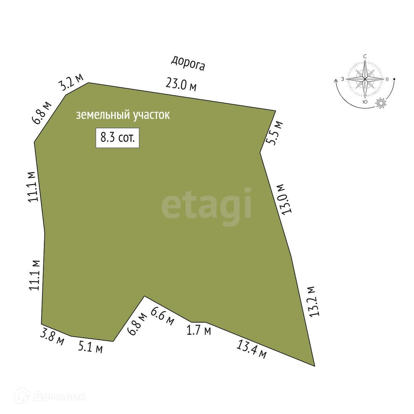 Общая площадь участка 8.33 сотоки.
