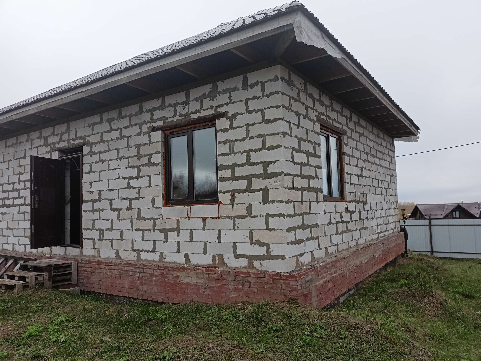 В продаже земельный участок 12 сот. и дом, назначение: неоконченное строительство, 80 кв.м. Краснкамский городской округ, пос. Оверята, ул. Новостройки, д. 7. Дом из газоблока, стоят стеклопакеты. Без внутренней отделки. Газ проведен до дома, есть проект на газ. Участок ровный и сухой. На участке стоит большой хороший сруб из бревна под баню.