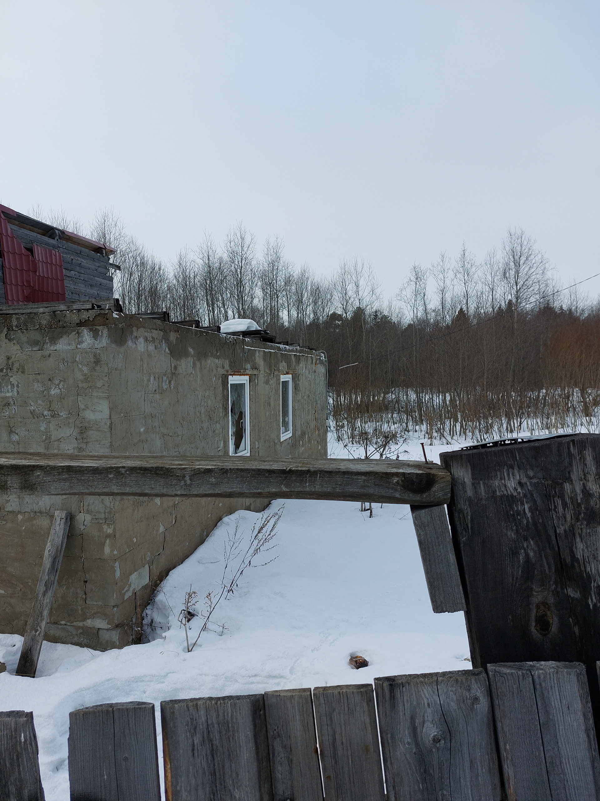 На участке расположен недостроенный дом, по документам дом зарегистрирован. Участок расположен возле дороги.