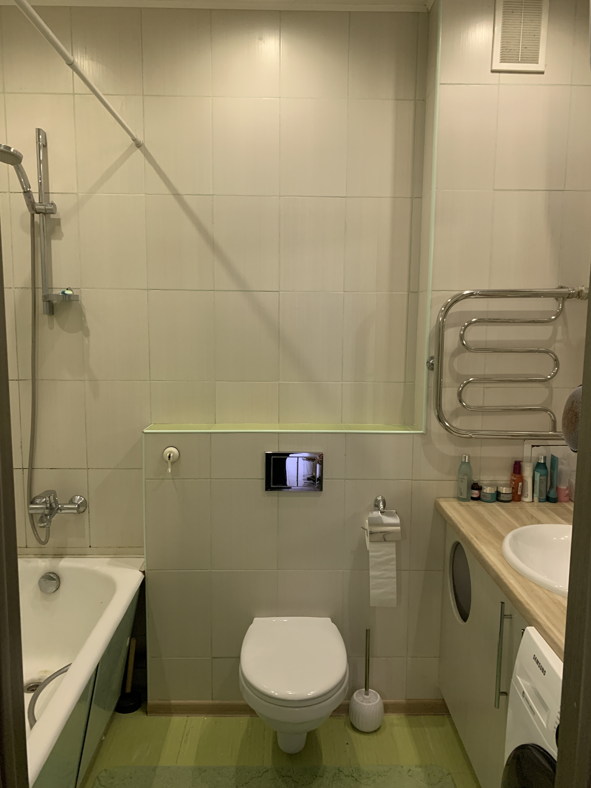В ванной комнате установлен водонагреватель . Поэтому есть возможность обеспечения круглогодичной подачи горячей воды, оптимизировав при этом все расходы, особенно, на потребление воды.(Оставляют по договоренности водонагреватель и мебель в ванной).