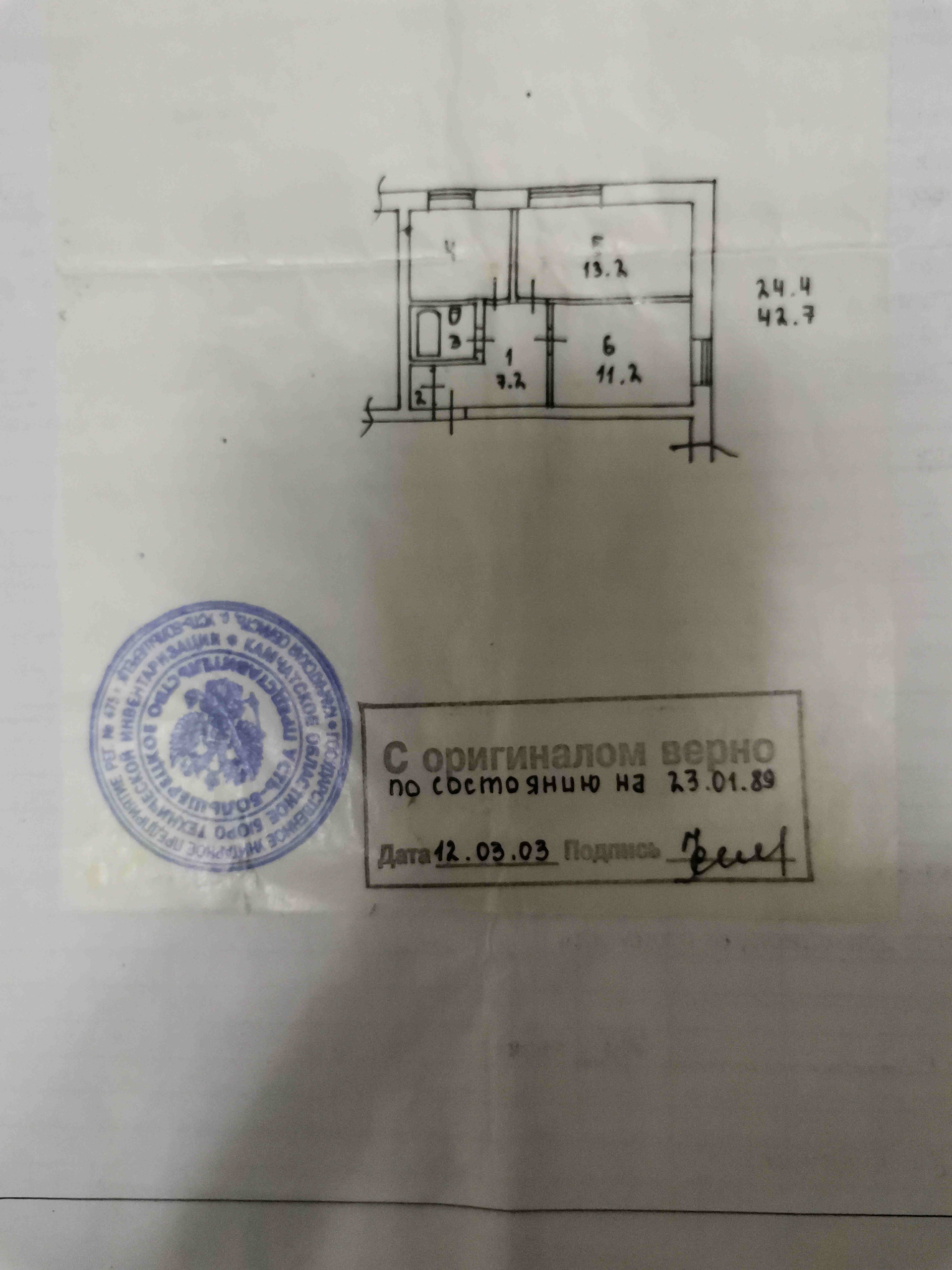Общая площадь 42.7 м2
