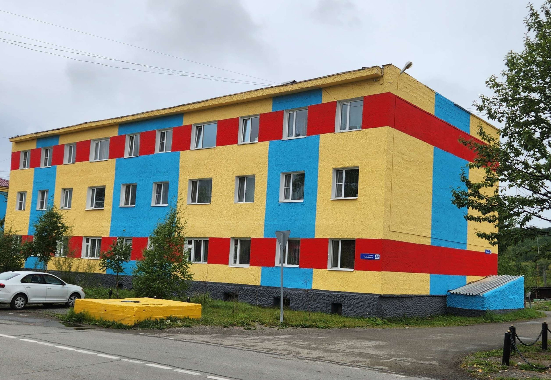 Тёплая, светлая квартира на втором этаже трёхэтажного блочного дома с прекрасным видом на фонтан и детскую площадку, расположенную в центре посёлка.