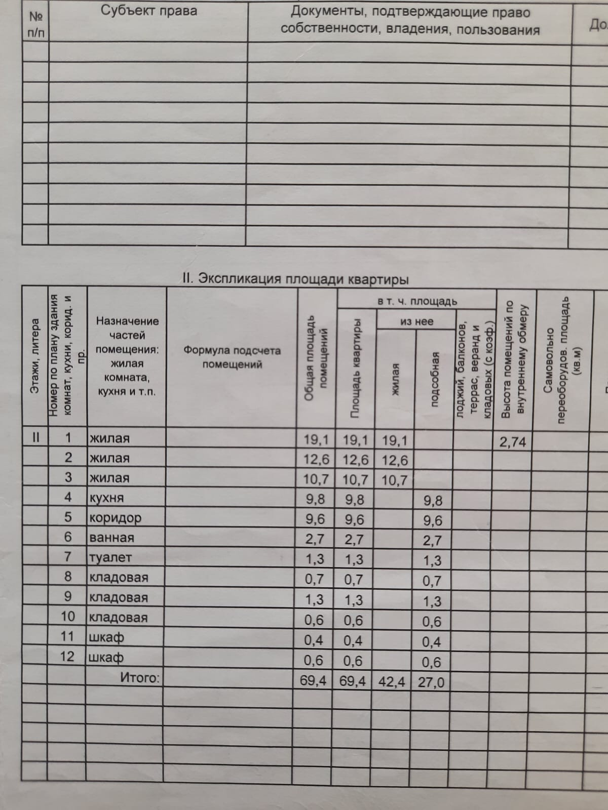 Общая площадь 69.4 м2