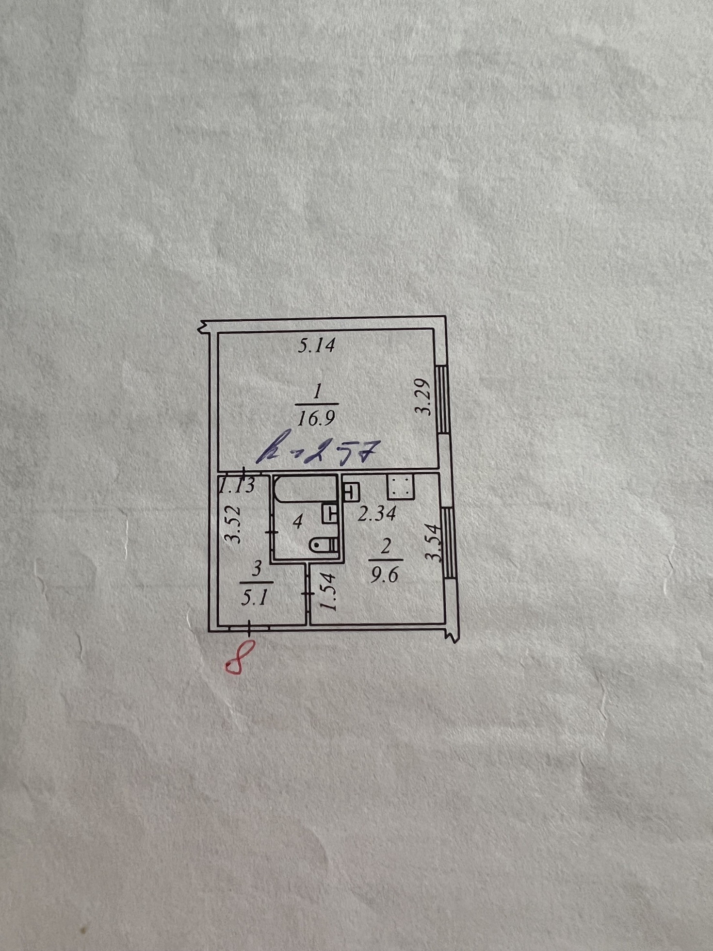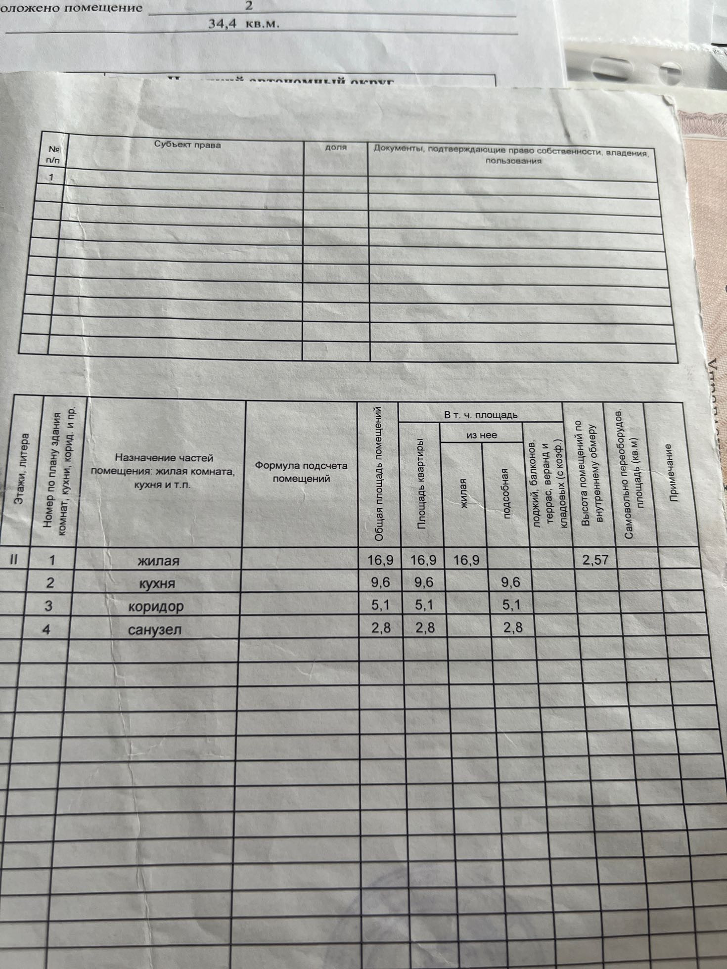Общая площадь 34.4 м2