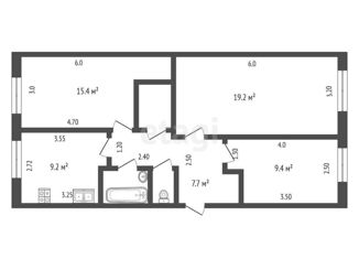 Общая площадь: 52.7 м2
