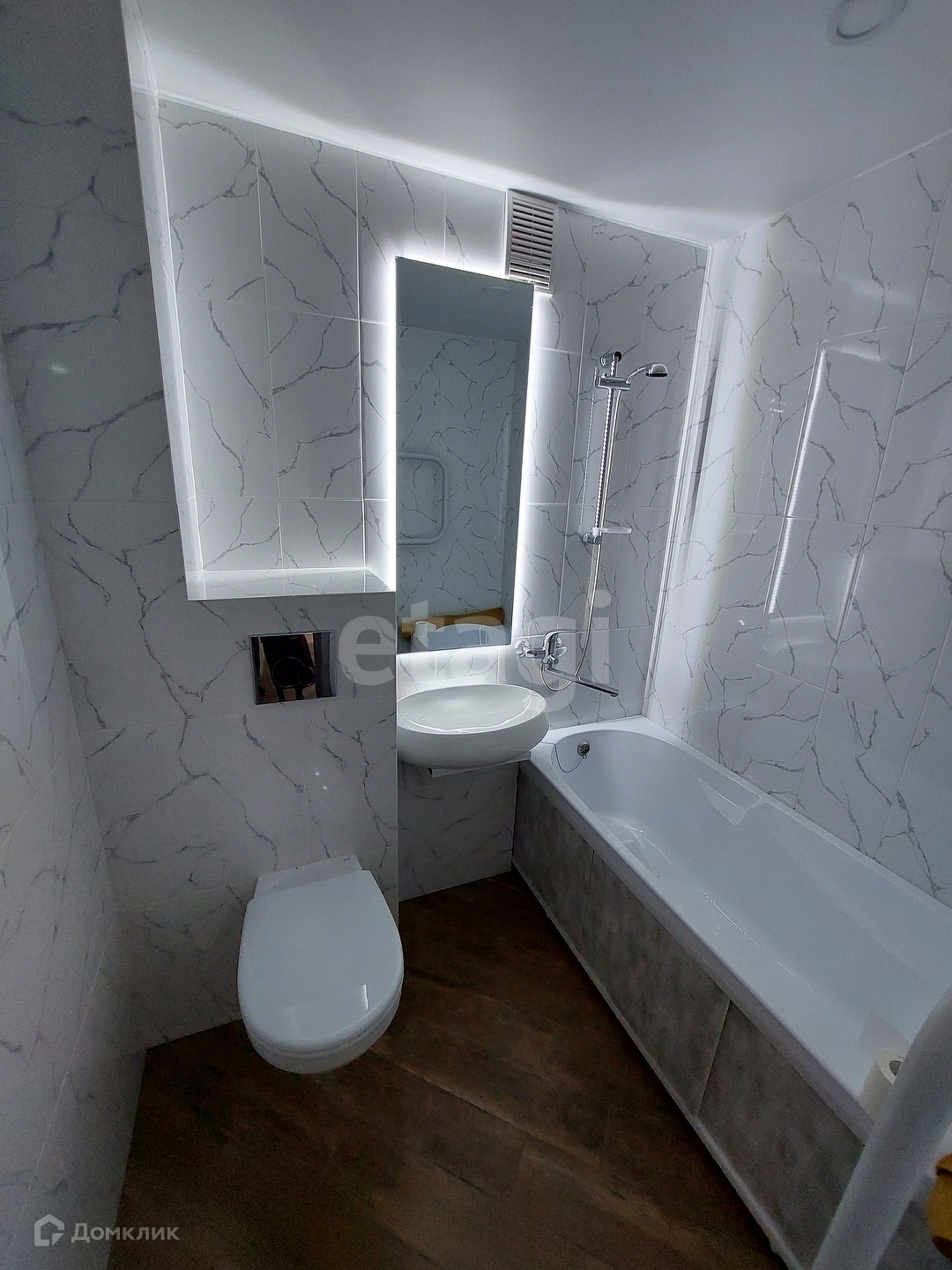 Ванная комната с качественной сантехникой и несколькими вариантами подсветки. Сделана инсталляция.