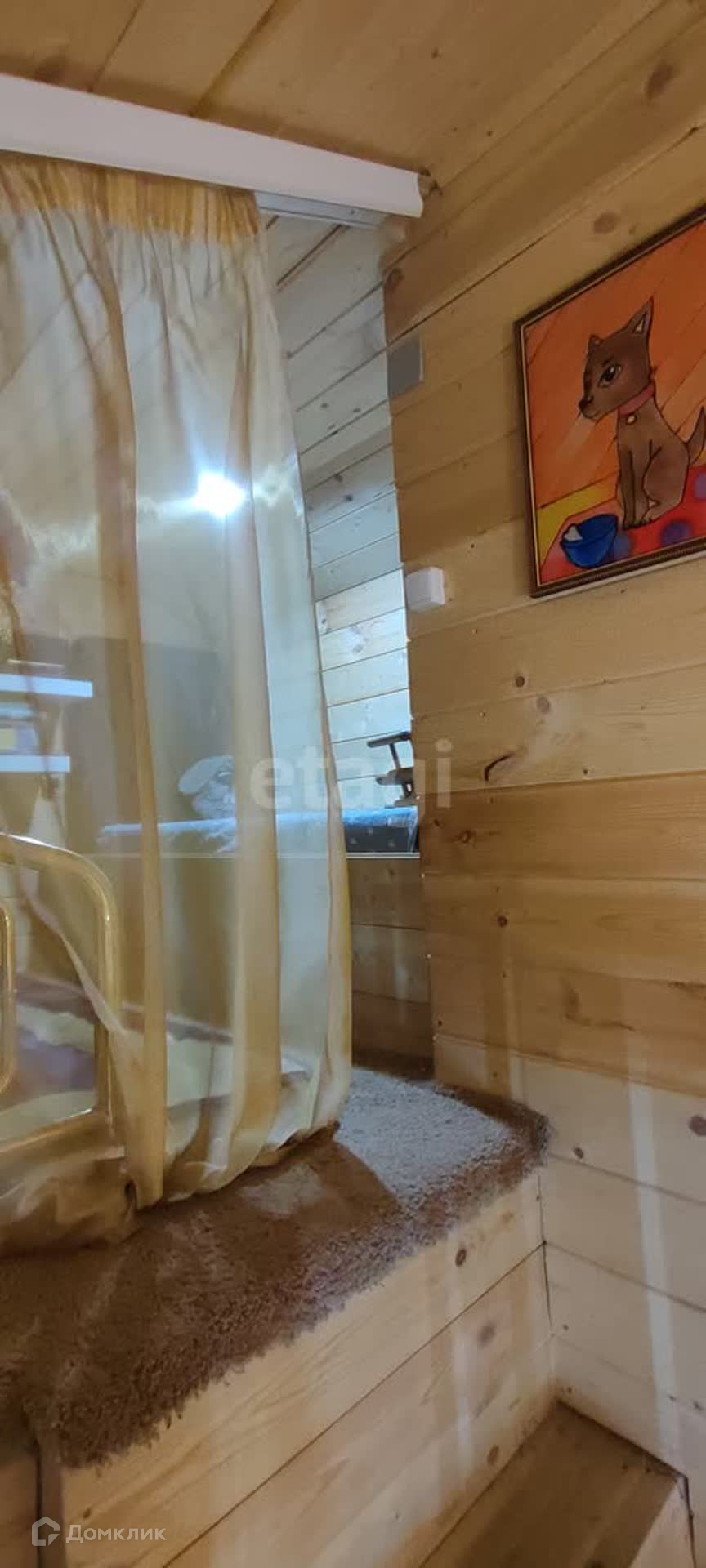 На мансардном этаже спальня, на первом зона отдыха. Кухня просторная, имеется кладовка и веранда. Баня обшитая вагонкой из липы и имеется летний душ. Круглогодичный проезд. По электроэнергии перебоев нет. Отопление печное и электрическое.