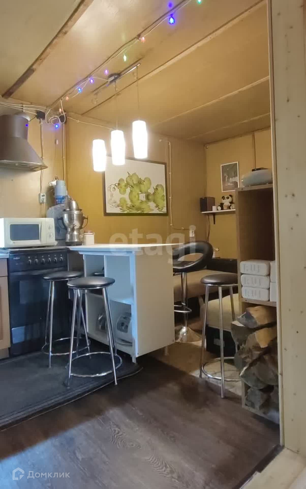 На участке видеонаблюдение, Триколор, вай-фай, кинопроектор с большим экраном, мебель, бытовая техника.