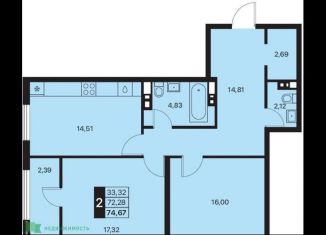 Общая площадь: 74.7 м2