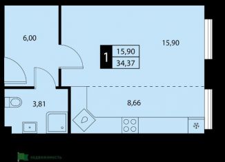 Продажа квартиры студии, 34.4 м2, Санаторная улица