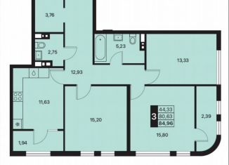 Трехкомнатная квартира на продажу, 84.7 м2, Санаторная улица