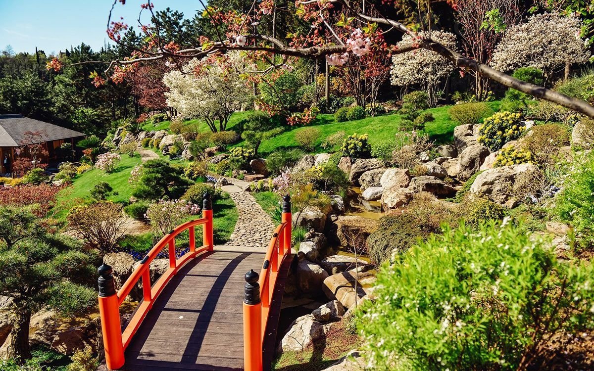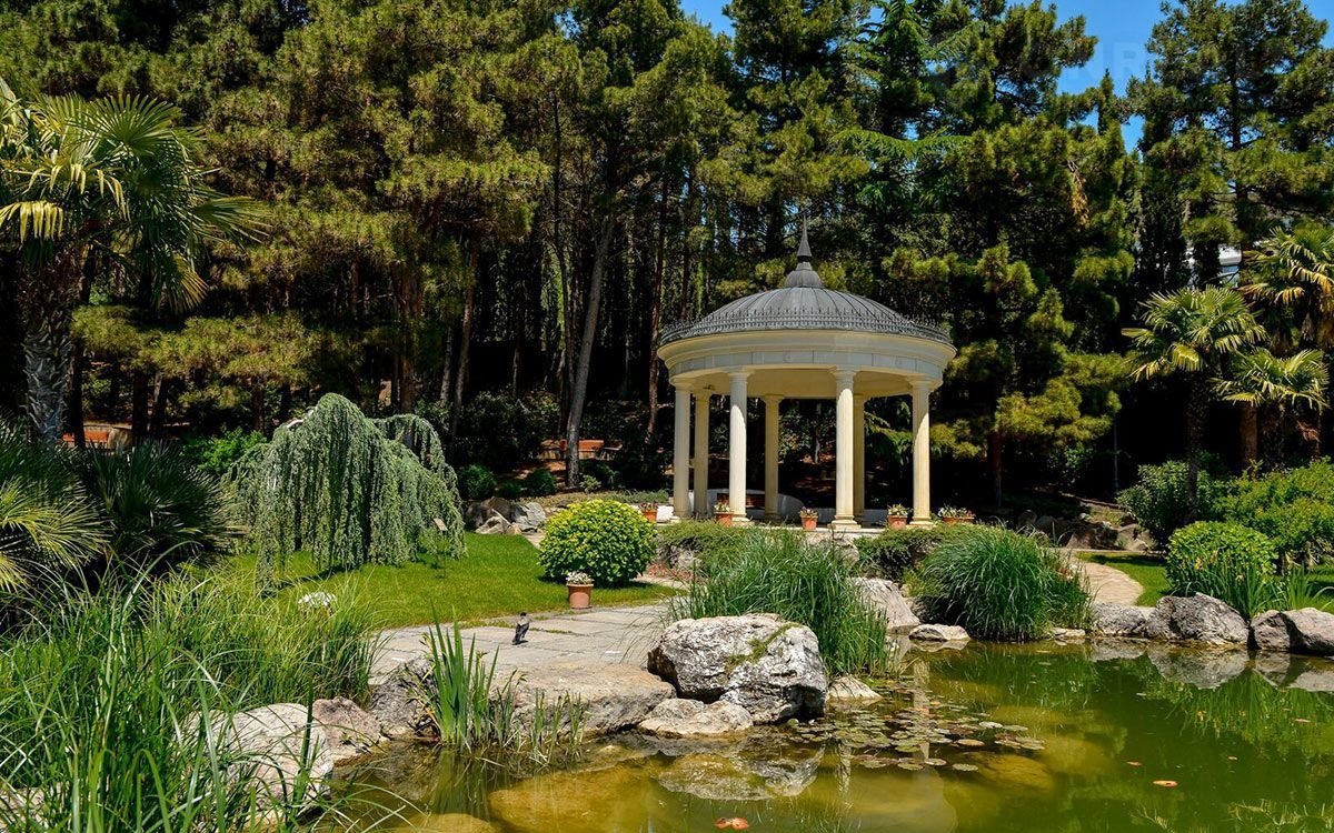 Площадь парка 26 га, на которых объединены различные парковые направления: пейзажный английский сад, японский сад, мексиканский сад, античный сад (оливковая роща) и другие.