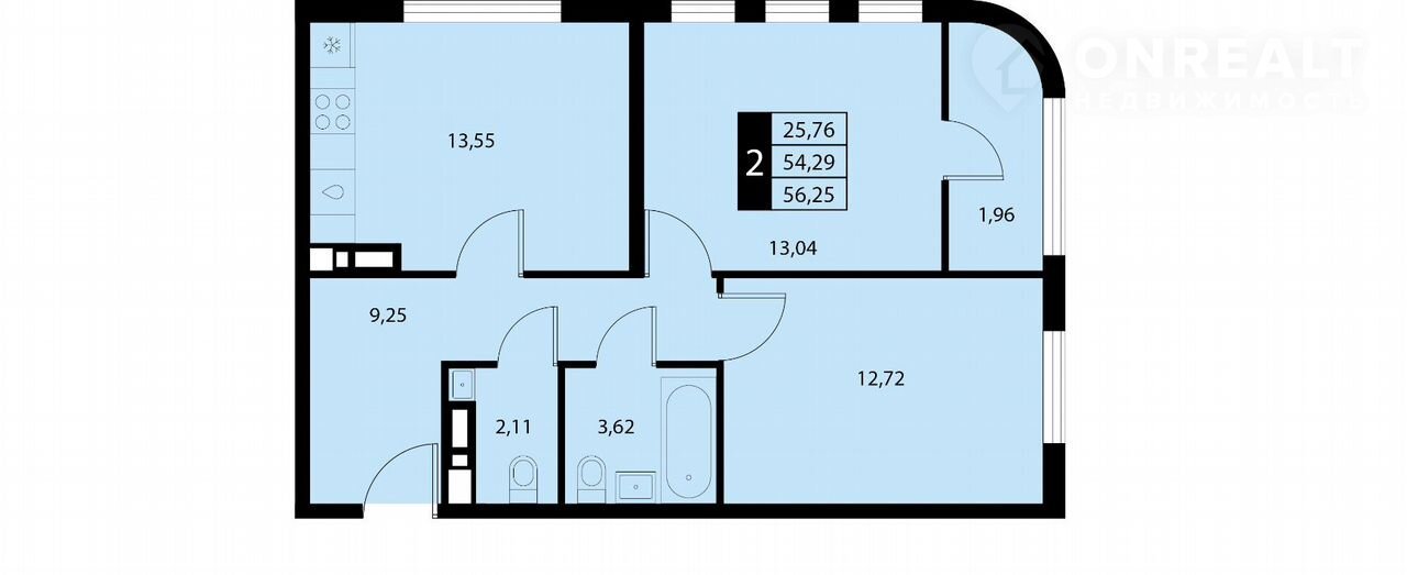 Общая площадь 56.5 м2