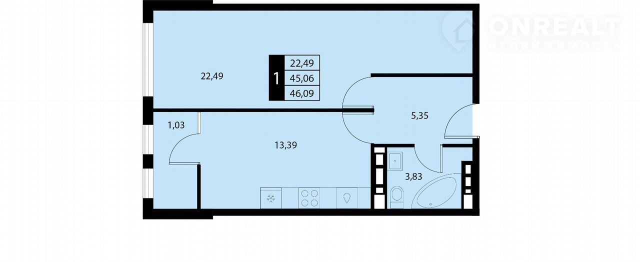 Общая площадь 46.1 м2