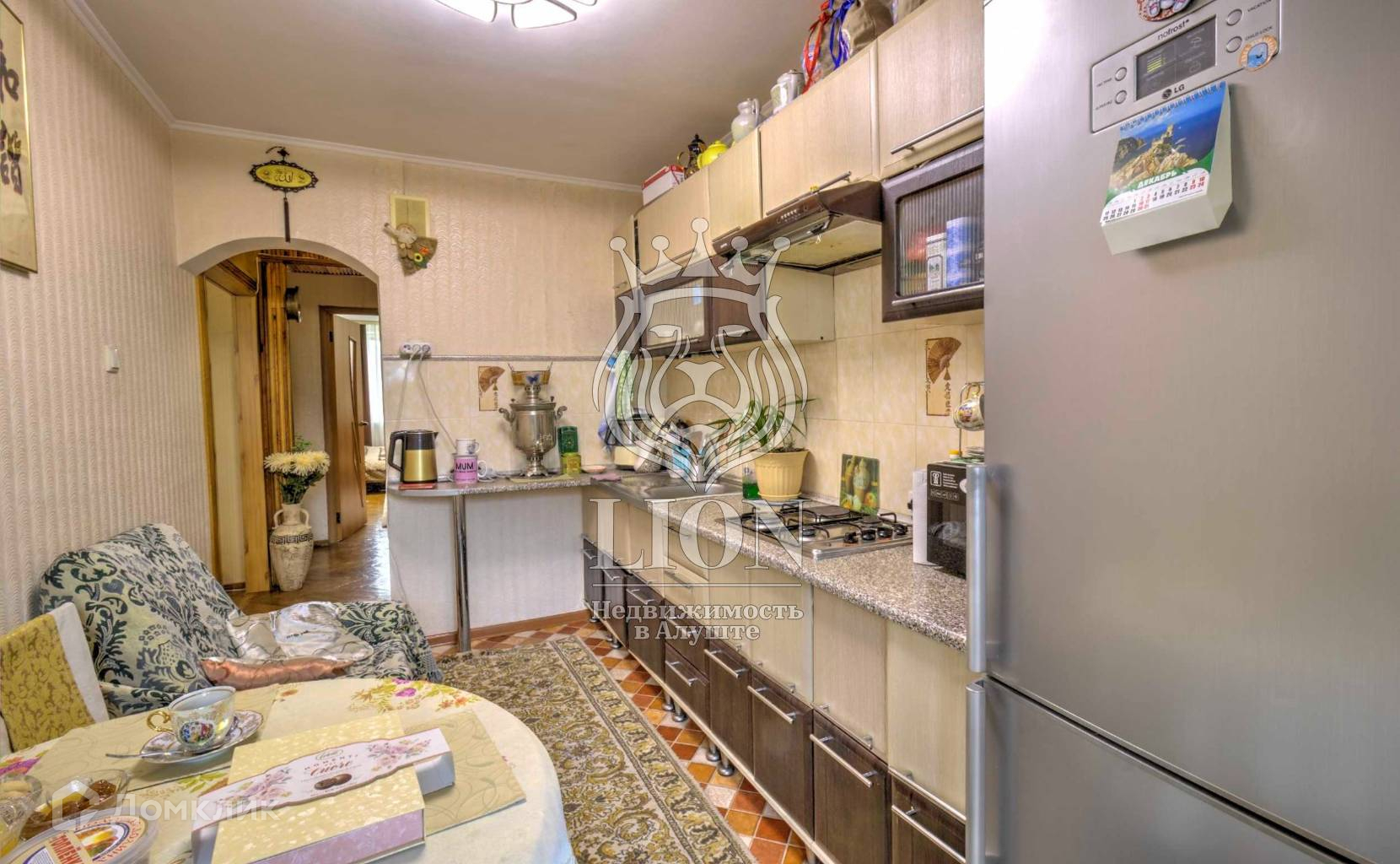 Объект № 6702 O квартире: Шикарная, просторная, светлая трехкомнатная квартира с видовыми характеристиками и головокружительным видом на море и горы. Необычный и очень удобный проект по планировке: просторный холл - коридор, раздельные комнаты, совмещенный санузел и большая кухня. Квартира в хорошем жилом состоянии. Десяток лет назад, в квартире был выполнен качественный ремонт. По всем комнатам, покрытие пола из паркетного фриза натуральной древесины - дуб. Это всегда экологично, уютно и тепло. На горячую воду установлен бойлер. В квартире есть все самое необходимое для комфортного проживания в ней. Вся мебель и техника, частично остаётся новому собственнику. На квартиру установлен домофон. Очень уютная квартира для постоянного проживания и сезонного отдыха на всем побережье ЮБК!  О доме: Чистый ухоженный подъезд и дом 1975 года постройки. На каждом этаже расположено по три квартиры. На сегодня коммунальными службами и подрядчиками, выполняются работы по капремонту дома, крыши, подъездов и двора. По всей территории высажены цветущие кустарники и множество реликтовых Крымских растений. Во дворе есть места для активного и спокойного отдыха, а также  возможность парковки личного автотранспорта. Вся необходимая инфраструктура в шаговой доступности. По расположению от моря и центральной набережной двадцать минут прогулочным шагом. О районе: Очень хороший район по своему месторасположению. Вся необходимая инфраструктура в шаговой доступности. Хорошая транспортная развязка. Это очень востребованный район города большой алушты пгт. Партенит с прямым примыканием к “Санаторию Айвазовское и величественному парку Айвазовское” утопающему в реликтовых деревьях Крыма и своей историей с середины 60-х годов прошлого века. Этот район плавно переходит от красоты парковой растительности в красивую набережную чистого черного моря. По своему расположению данного района, все самое лучшее для вас, находится именно здесь!
