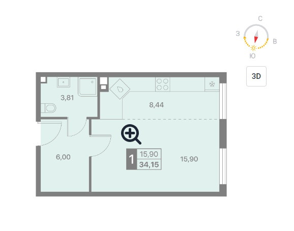 Продается квартира площадью 34,2 м2. Квартира расположена на 2-ом этаже 16-ти этажного монолитного здания. Высота потолков 2.7 м.