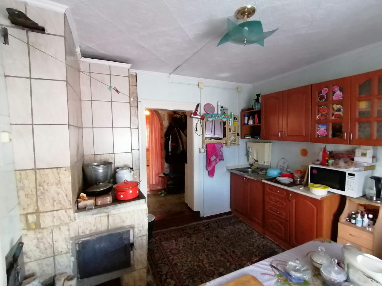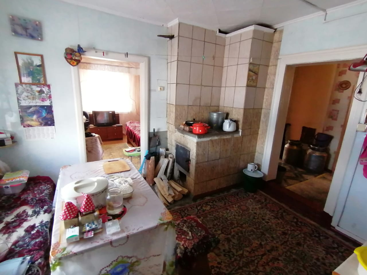 Отопление здесь предусмотрено на все случаи жизни, ведь есть две печки, на которых можно готовить пищу, а также газовая плита. Водяное отопление от печи проведено в двух комнатах по контуру.