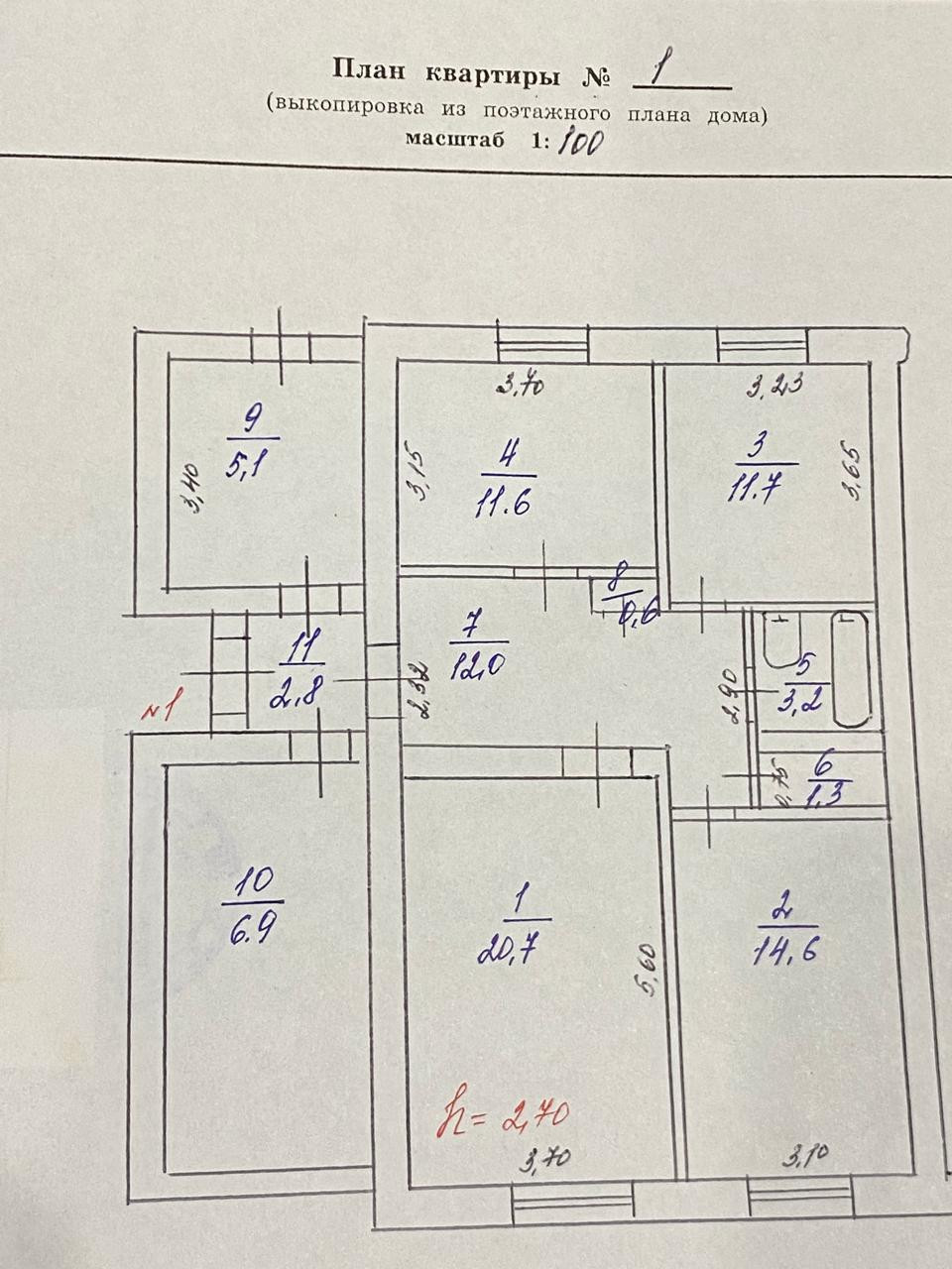 Жилая площадь 90.5 м2