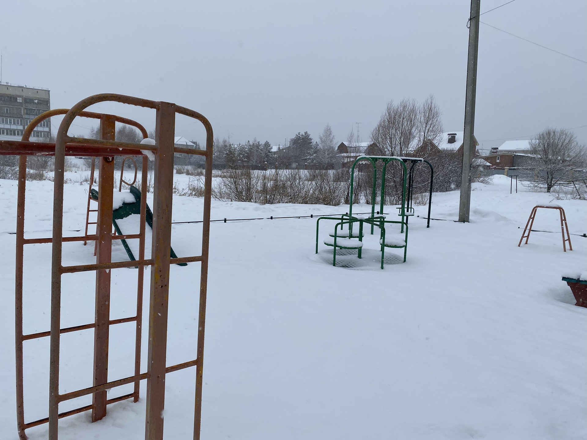 Во дворе детская площадка.