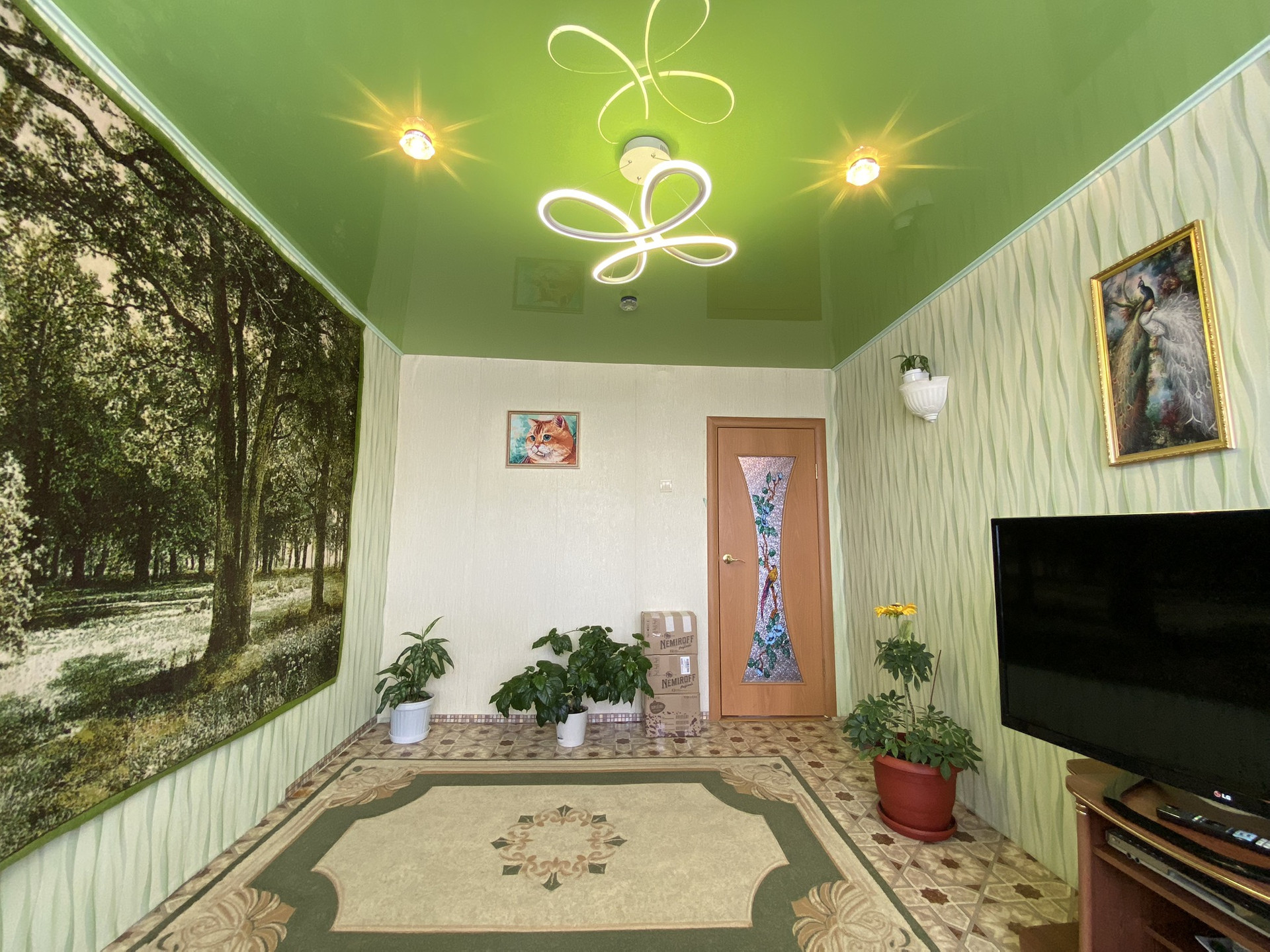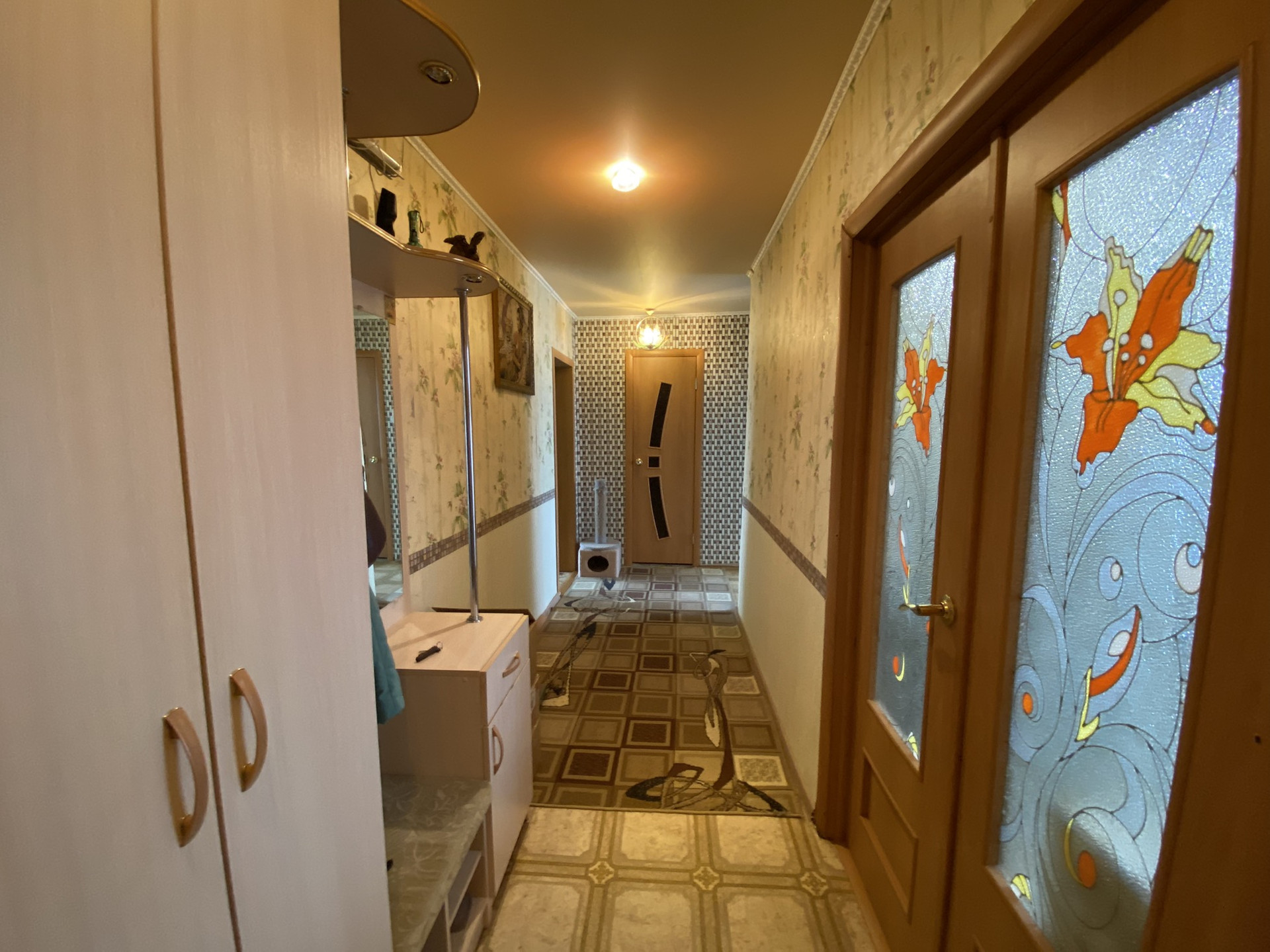 Сделан косметический ремонт( линолеум, натяжные потолки, межкомнатные двери, евроокна, входная железная дверь хорошего качества).