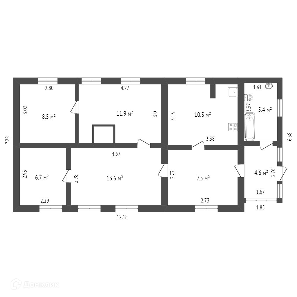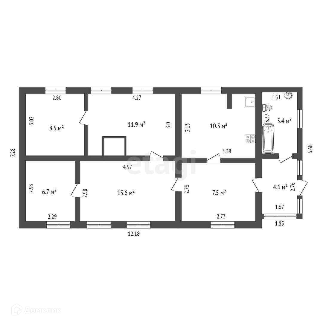 Дом 68,5 кв.м. на ровном обработанном участке. Дом состоит из четырёх комнат, кухни, прихожей. Дом крепкий на хорошем фундаменте, с косметическим ремонтом. В доме оборудован просторный санузел. К дому подведена вода из централизованного водопровода, подключено электричество. В доме газовое автономное отопление.
