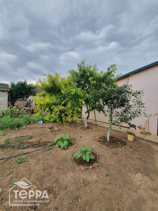 Вокруг дома высажены молодые плодоносящие деревья