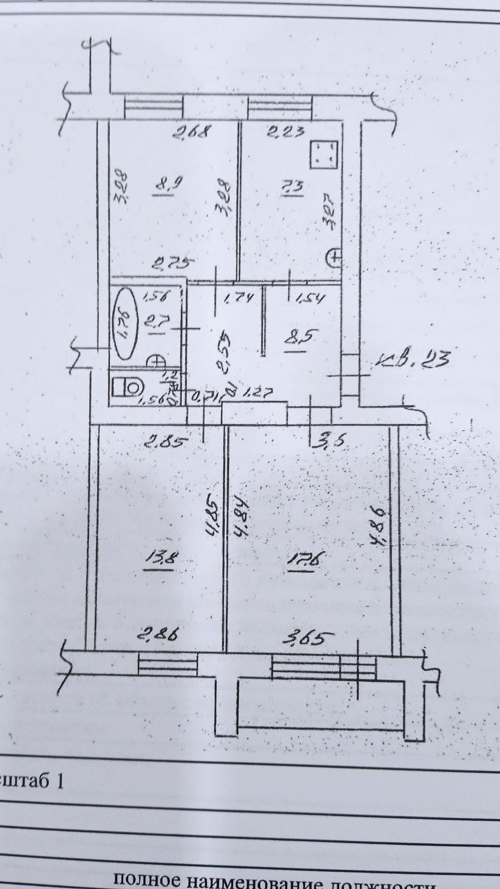 Жилая площадь 40.3 м2