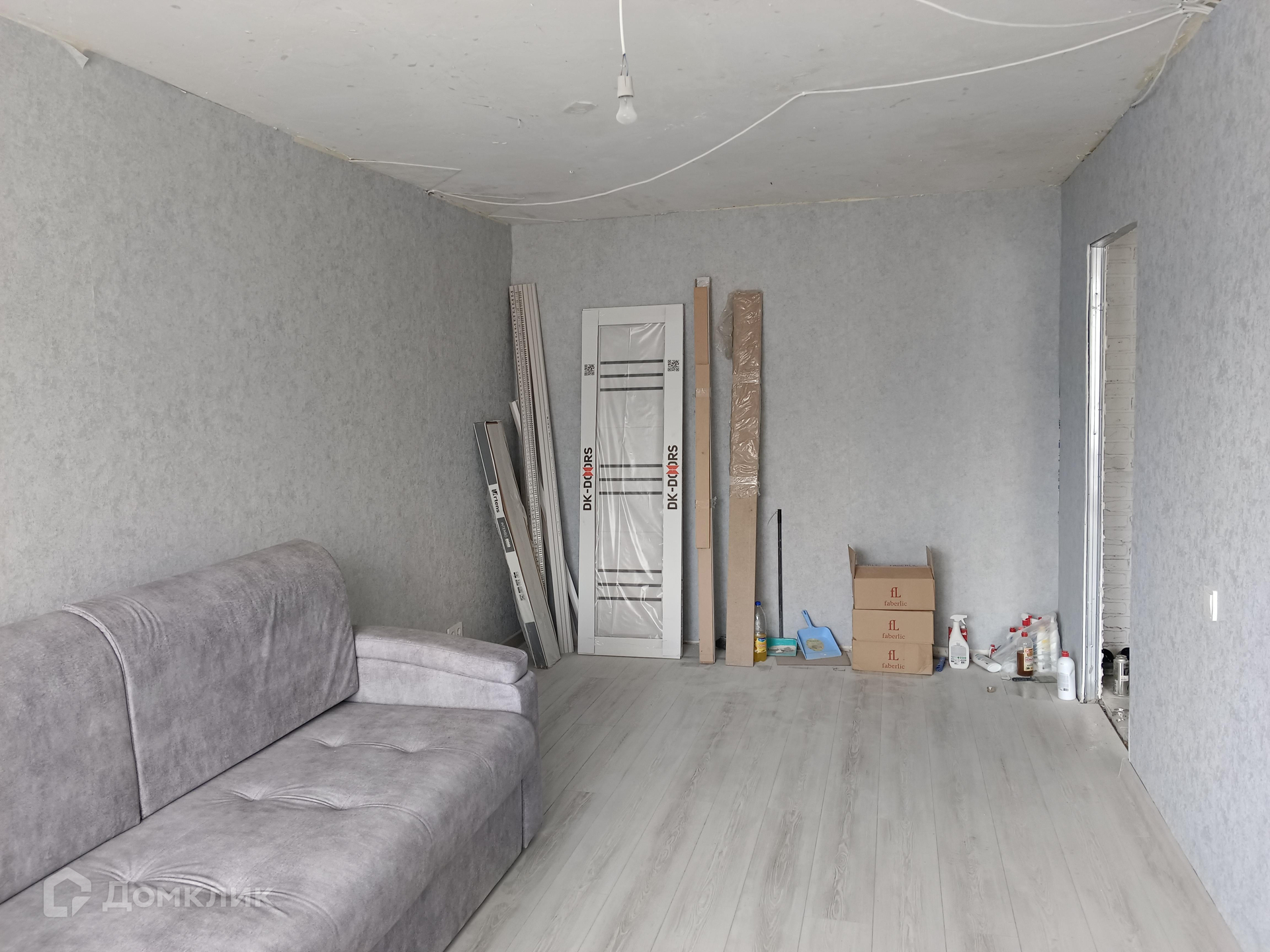 В квартире делают ремонт (поменяли электрику, залили полы). На кухне и коридоре плитка.
