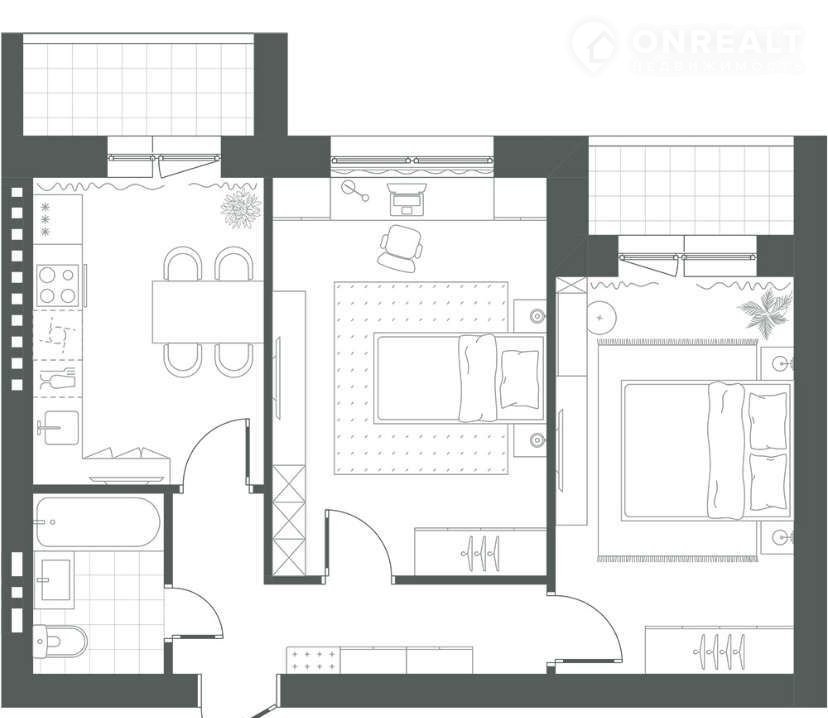 Площaдь c учетoм лoджии 55,78 кв. м, комнaты 16,08 + 14,03 кв.м.