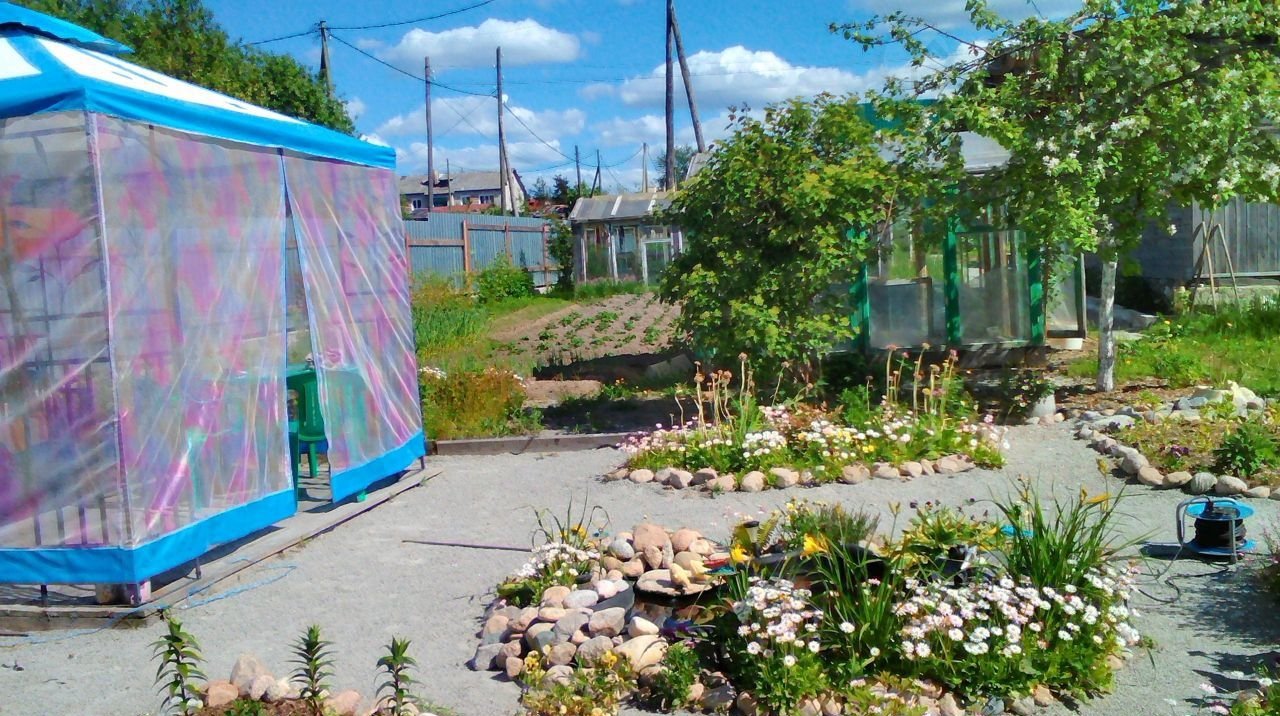 Земельный участок 11 соток - на участке баня, посажены кустарники черная и красная смородина, малина, 5 грядок клубники, много цветов. Деревья: 3 яблони, слива, вишни - все плодоносит. Участок ухожен.