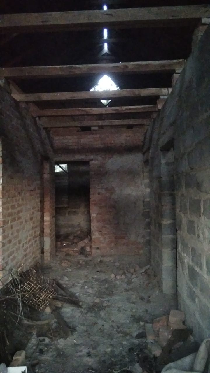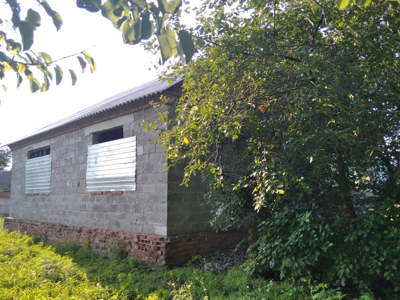 Возведена коробка жилого дома размером 10,5Х15,5. Спланированы зал, 2 спальни(детская и взрослая), коридор, просторная кухня, ванная и туалет совмещены. Межкомнатные перегородки и стройматериал внутри, крыша есть, без потолка.