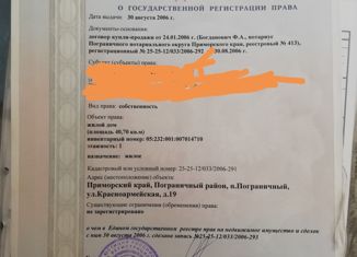 Продается СРОЧНО дом по адресу: п. Пограничный ул. Сун-Ят-Сена, 42. Общая площадь 100 кв.м, 3 спальни, зал 26 кв.м, кухня 16 кв.м, с/у совмещен, централизованное водоснабжение, 2 котла: твердотопливный и электрический, 380 W, 2 септика. Сад, полисадник, огород, хозпостройки. Общая площадь участка 16 соток.Приезжайте смотрите покупателю хороший тор... |