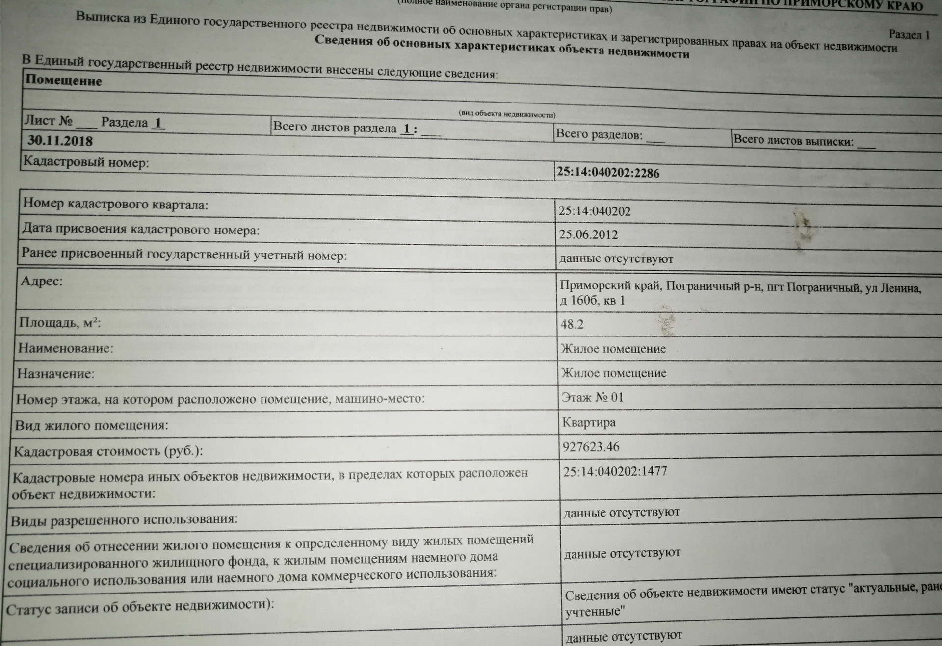3-комнатная квартира, 48.2 м2, этаж 1 / 1, на продажу в посёлке городского типа Пограничный, улица Ленина, 160Б