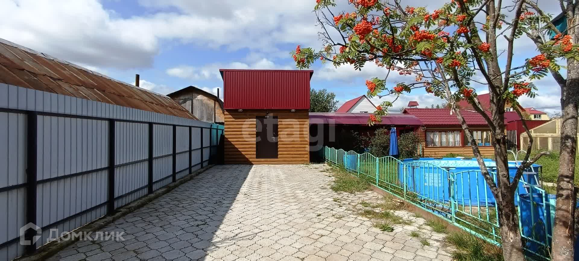 Территория дома облагорожена, на участке расположена баня, мангальная зона и теплая беседка для посиделок с родными и друзьями, есть теплица, посажены кусты вишни, имеется место для расположения бассейна, вольер для собак, двор выложен плиткой.