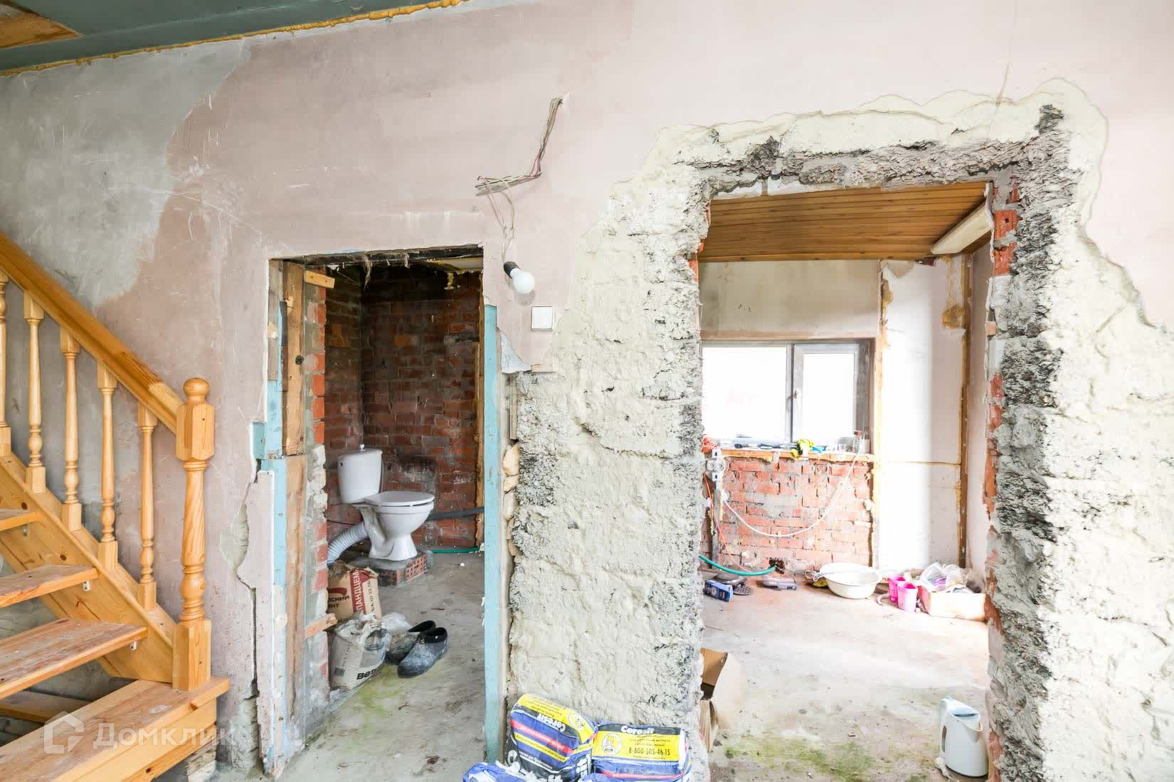 Дом построен из армоблока, обшит сайдингом. Дом требует частичного ремонта первого этажа.