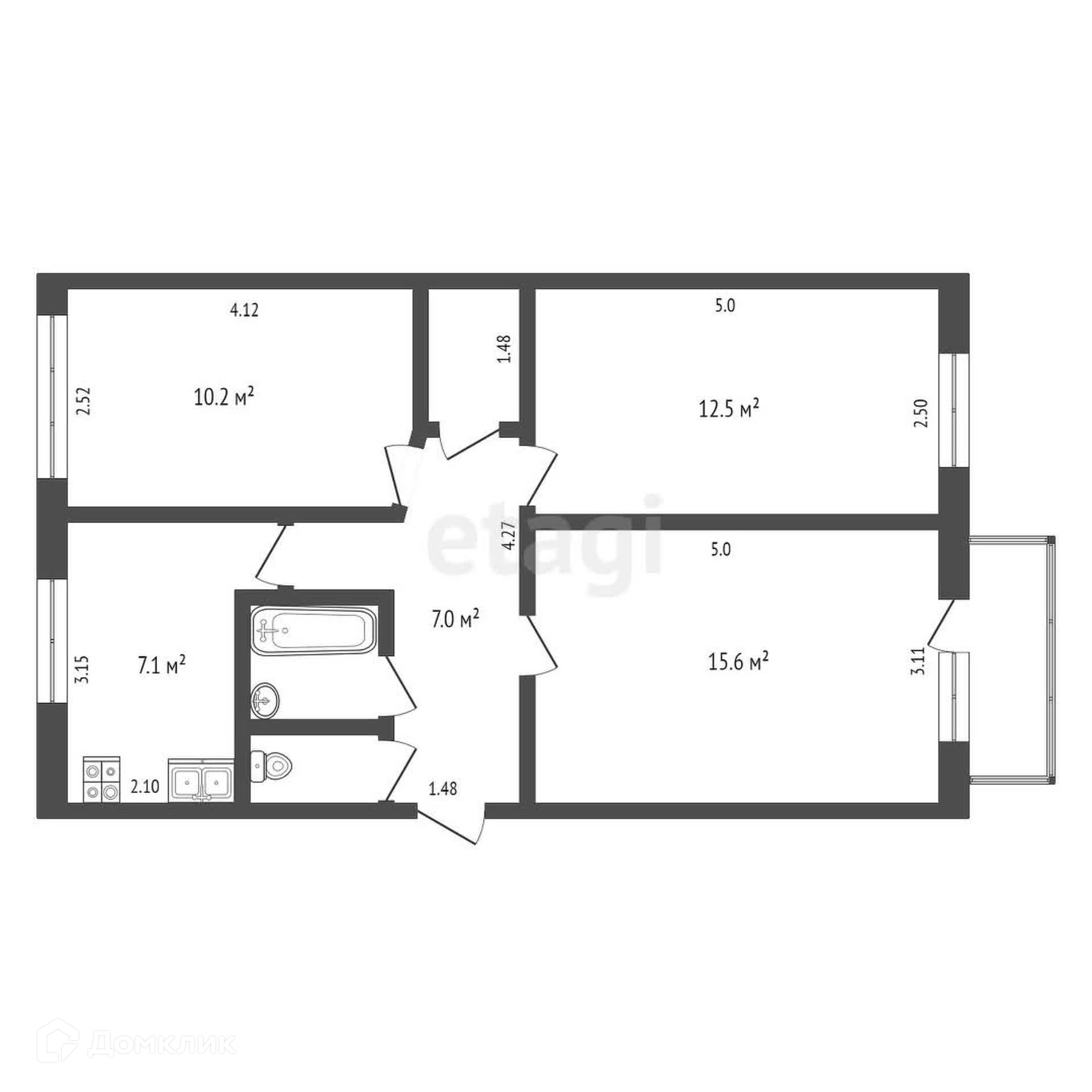 Общая площадь 57.6 м2
