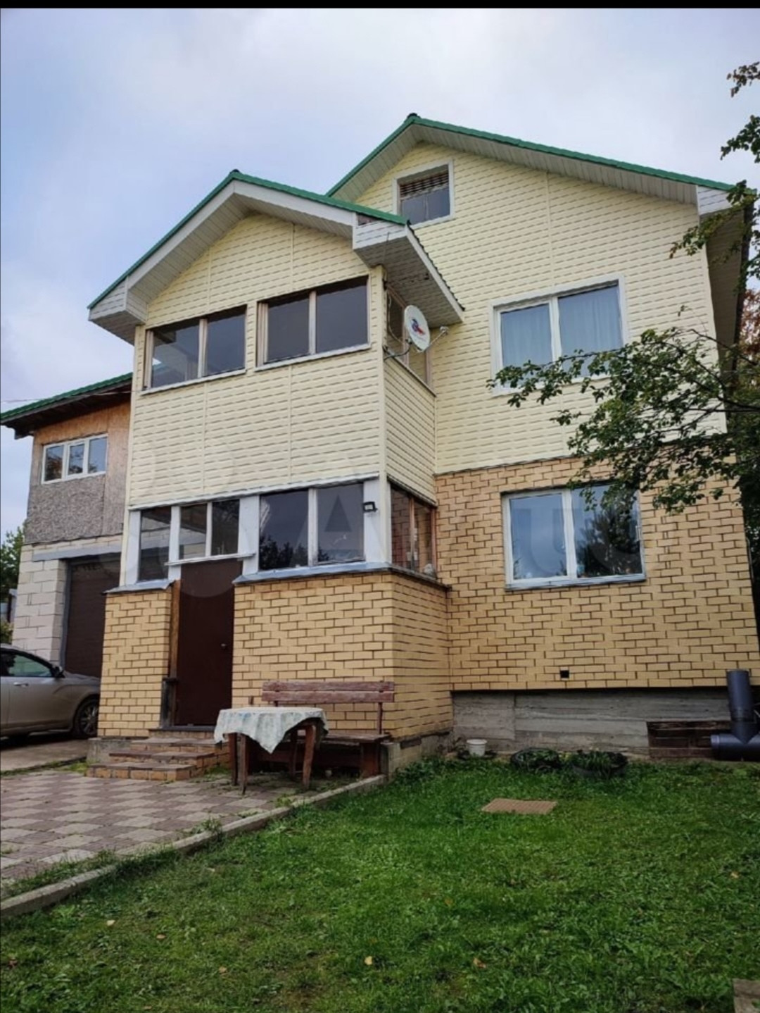 В доме: просторный холл, 4 спальни, кухня, гостиная, закрытая веранда, балкон, санузел. Окна ПВХ. К дому пристроен гараж с роллетными воротами.
